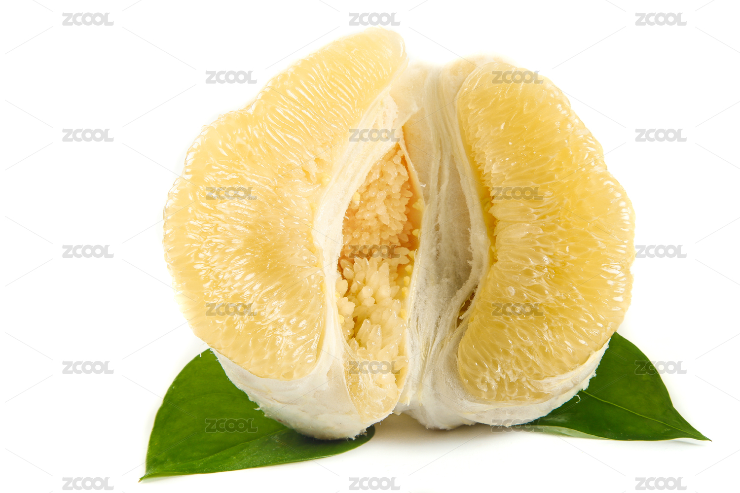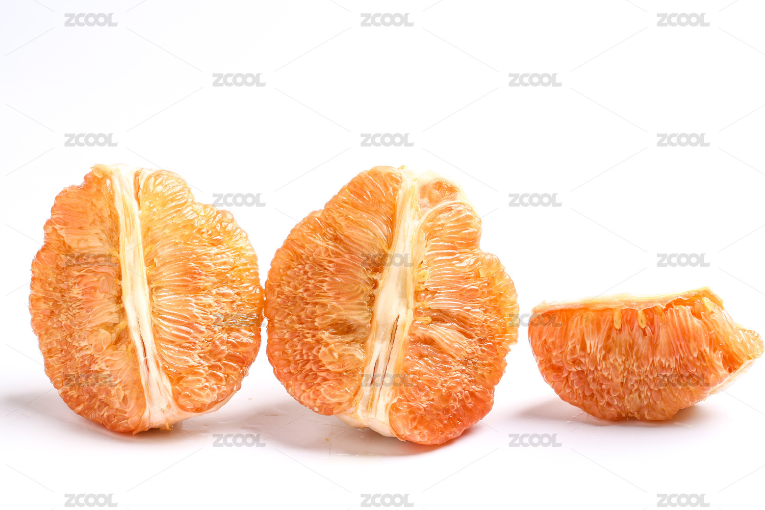白底上放着剥皮的梅州黄心蜜柚果肉