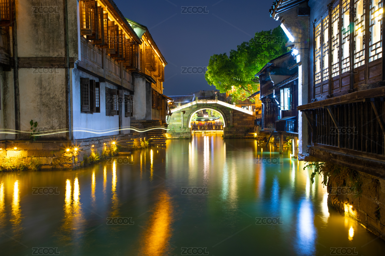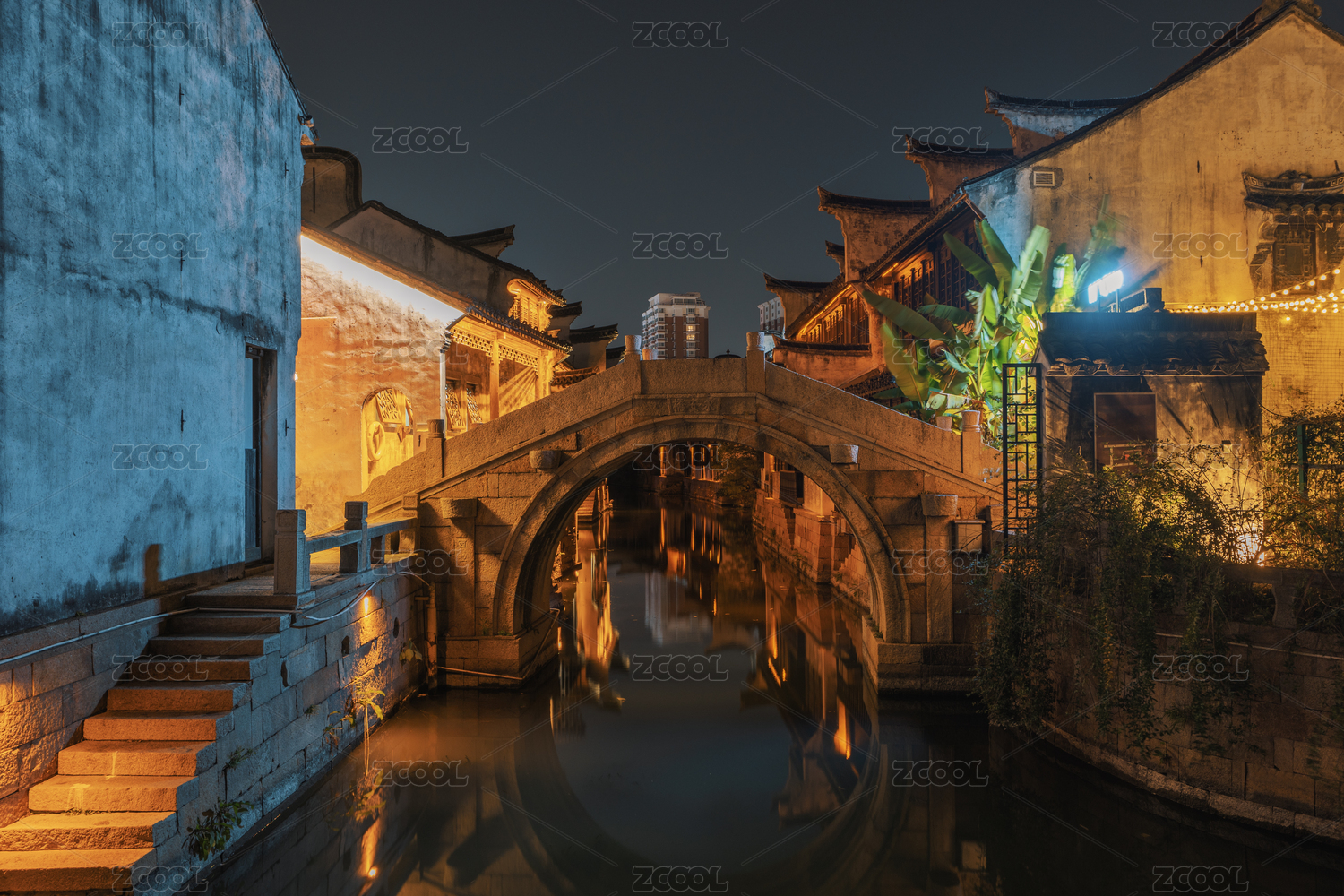 江南古镇夜景,小桥流水
