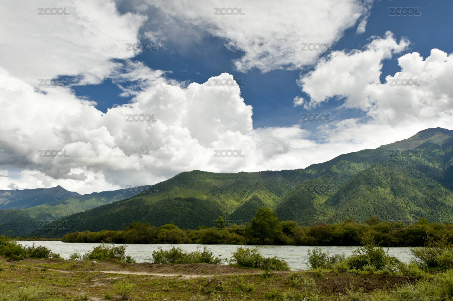蓝天,白云,高山,河流,风景,湖面,高原,绿色,天然环保,清新