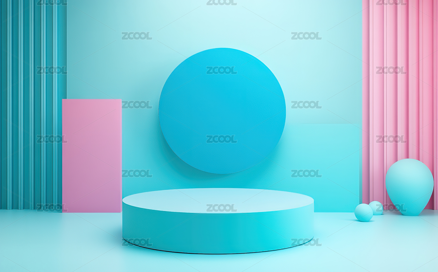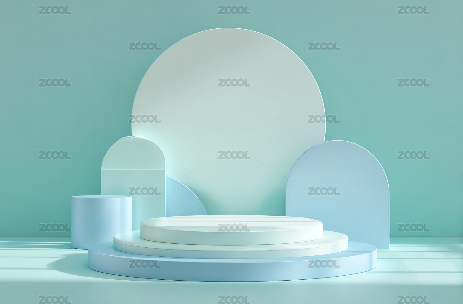 蓝绿色几何造型展示台