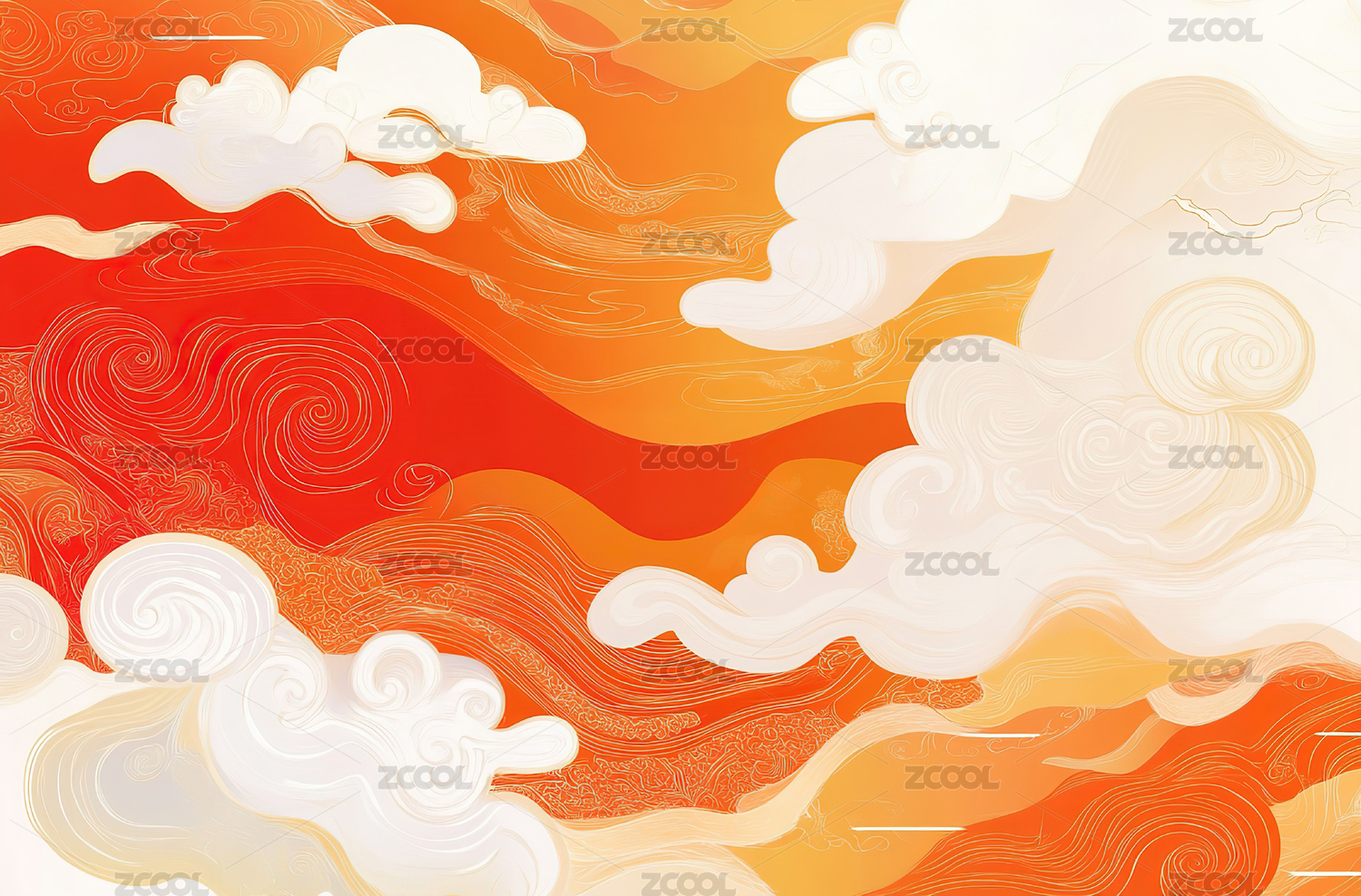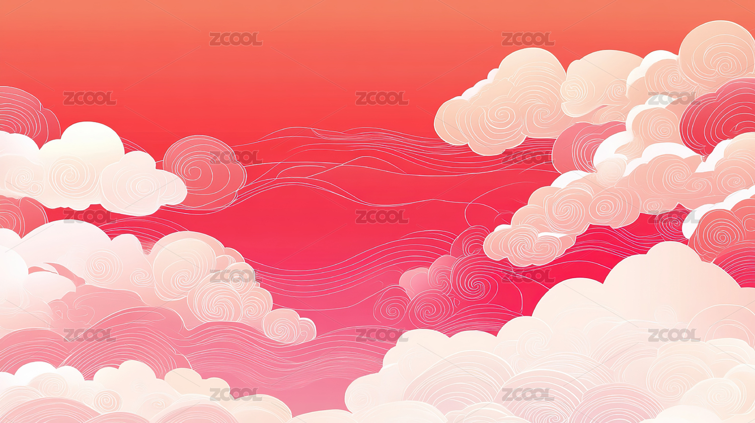 国潮风红色祥云插画 春节节日庆典祥云背景