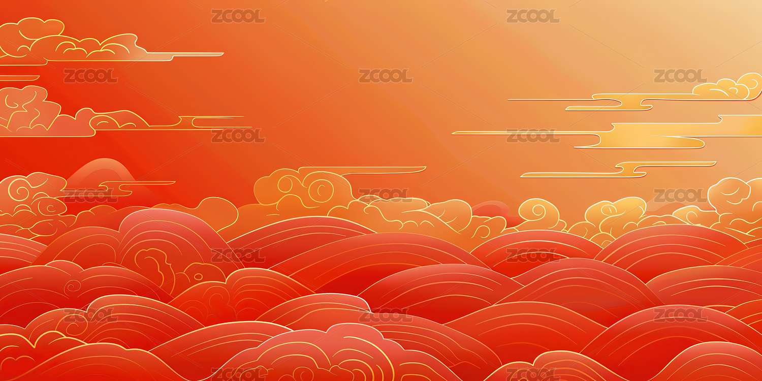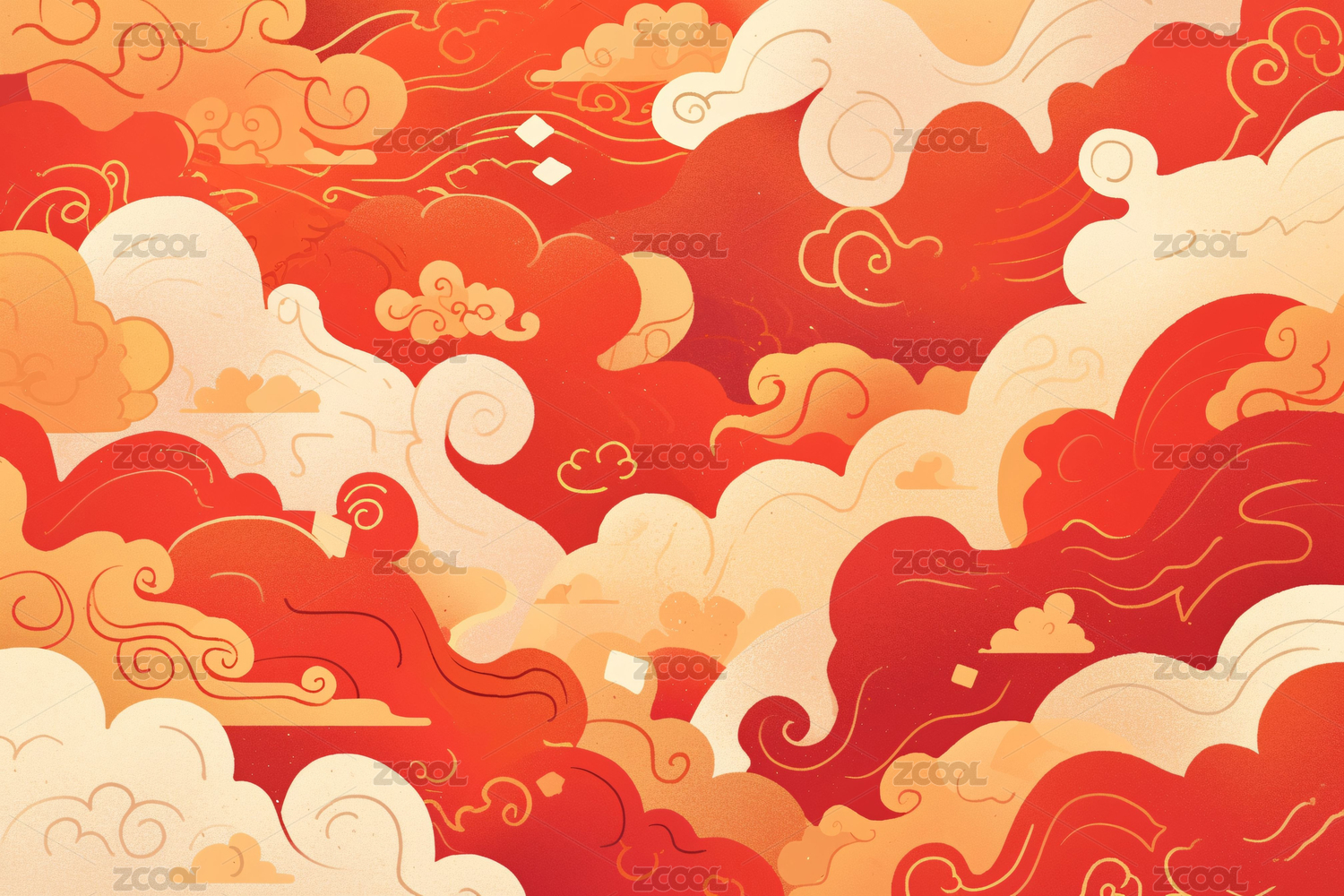 新年春节国潮祥云底纹传统祥云图案红色背景