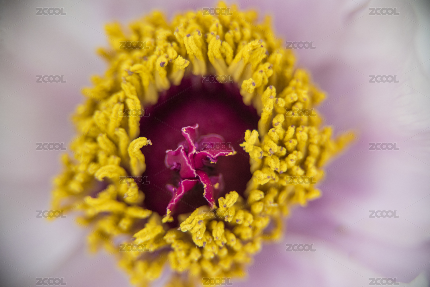 春天芍药黄色的花蕊特写