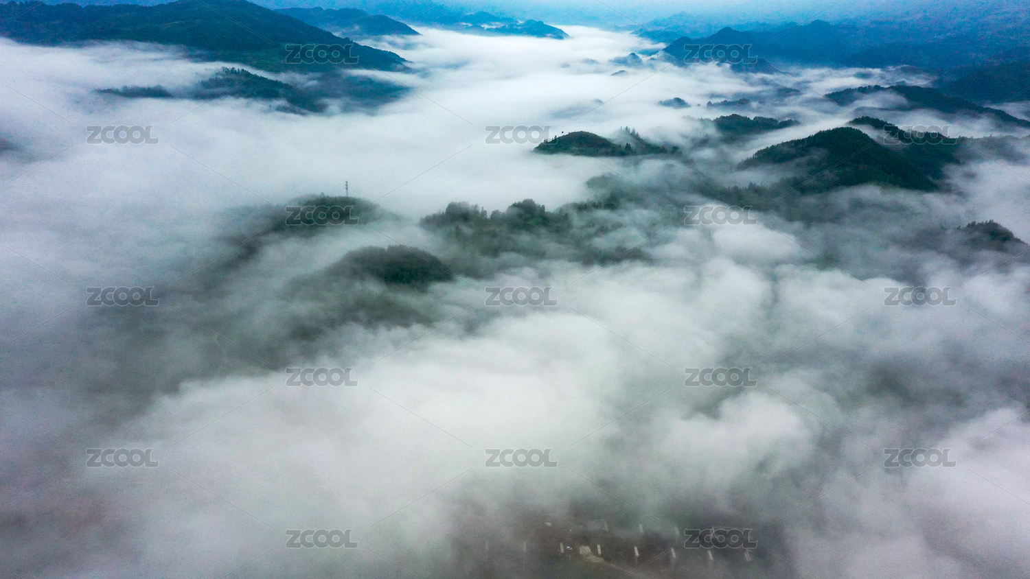 航拍日出时分云雾缭绕下的四川宜宾兴文县城