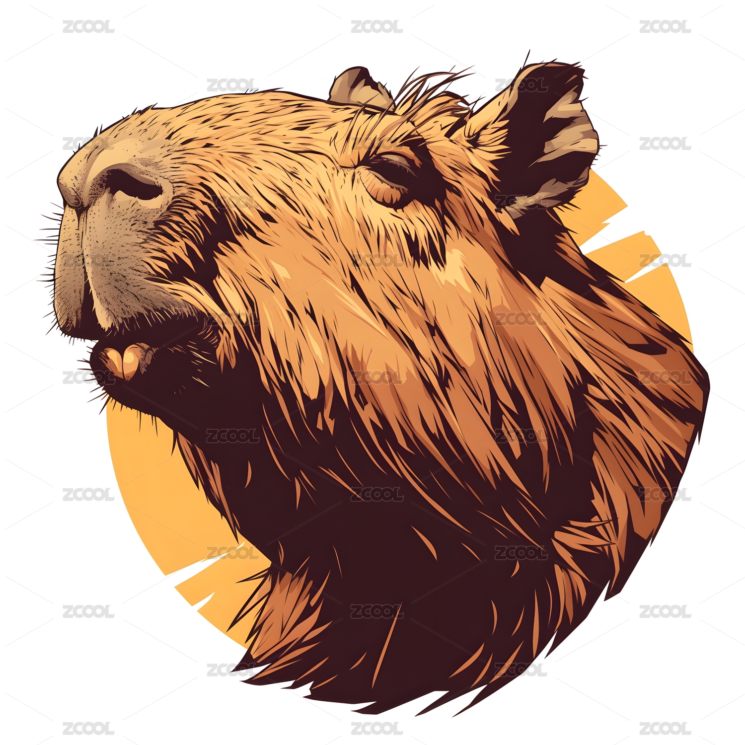 水豚,水獭,卡皮巴拉,毛发,矢量,插画,涂鸦,美式,潮流,油漆