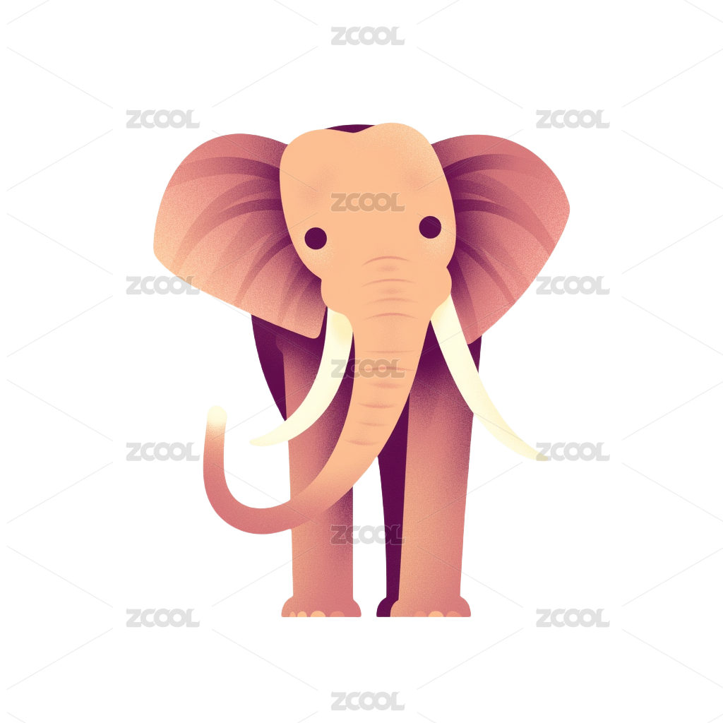 扁平简笔画卡通风格大象趣味插画图案