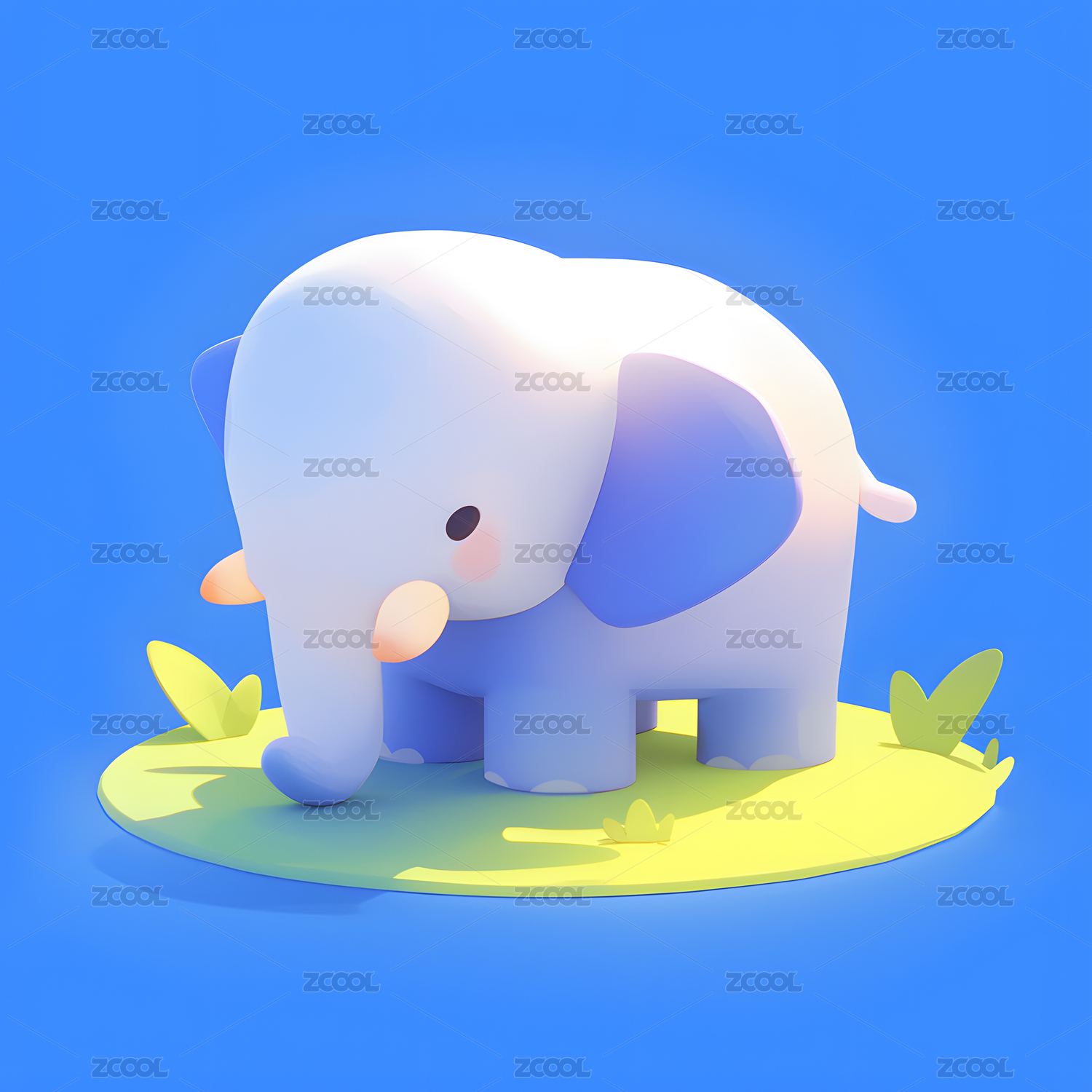 扁平风格可爱的蓝色的大象动物元素