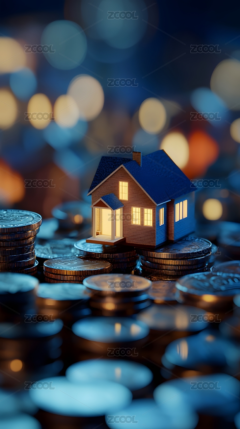 传统,房屋,模型,金币,堆积,商务,金融,投资,房产,地产