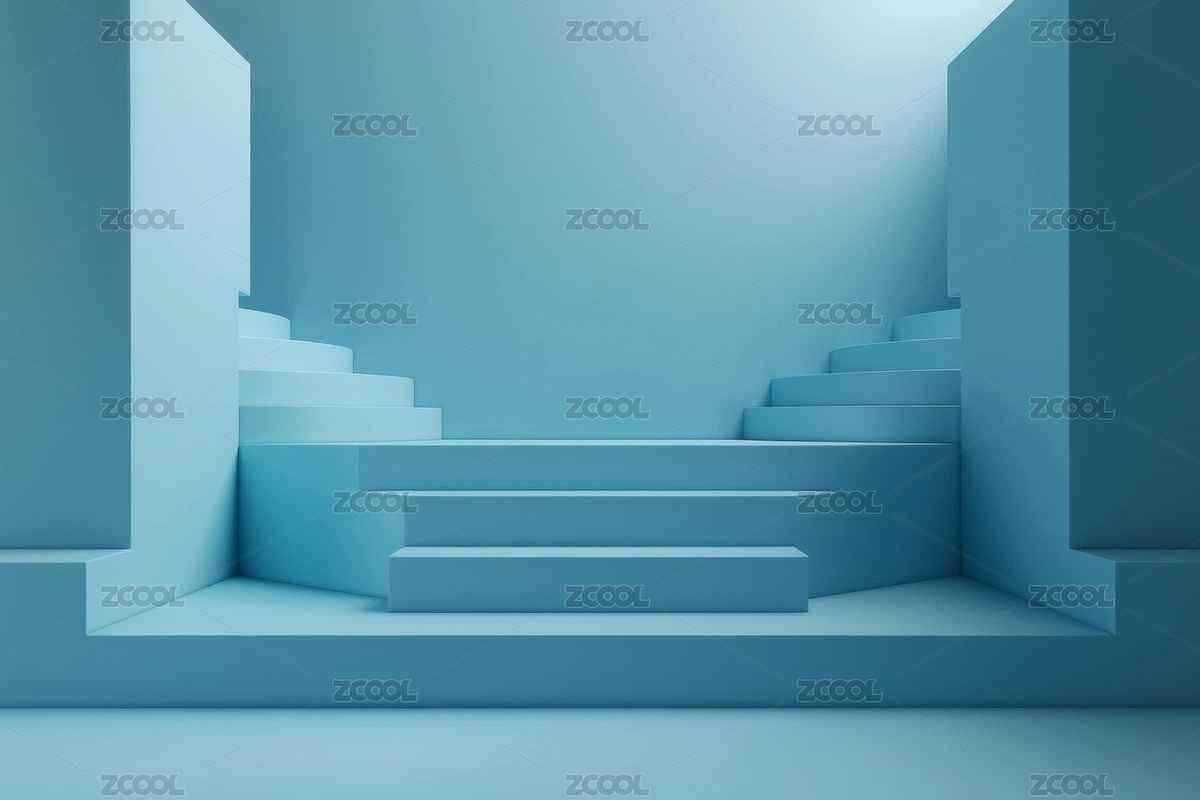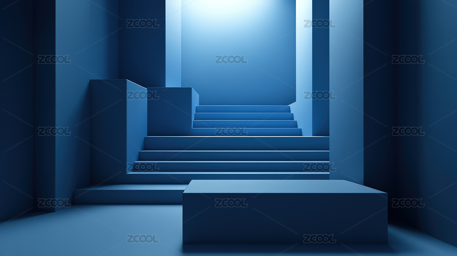 建筑,现代,设计,室内,楼梯,几何,极简,蓝色,背景,展示