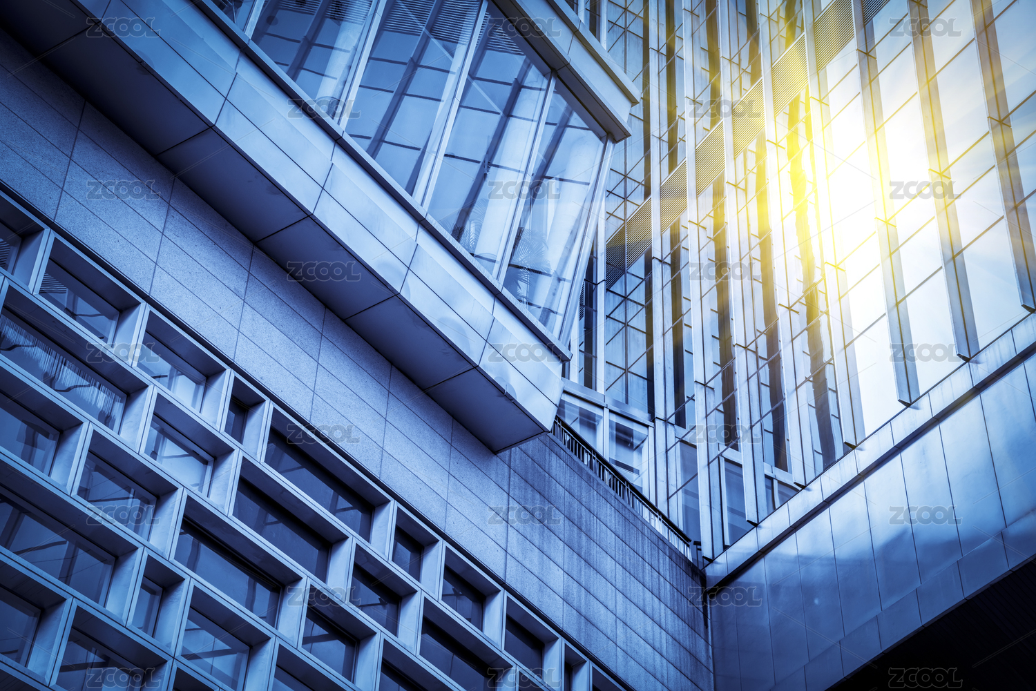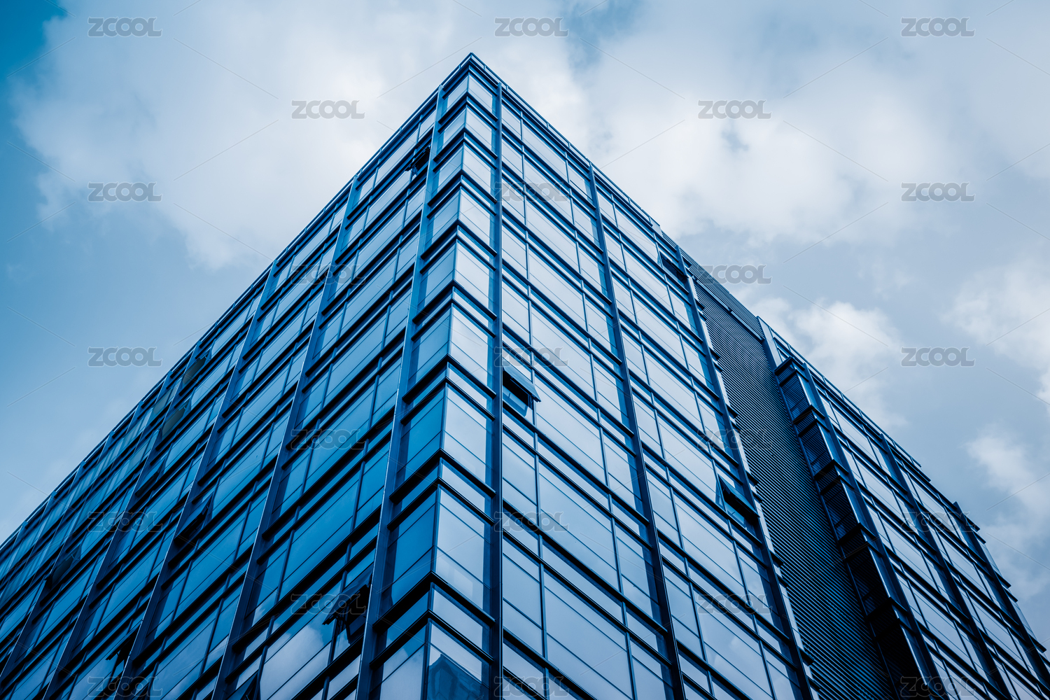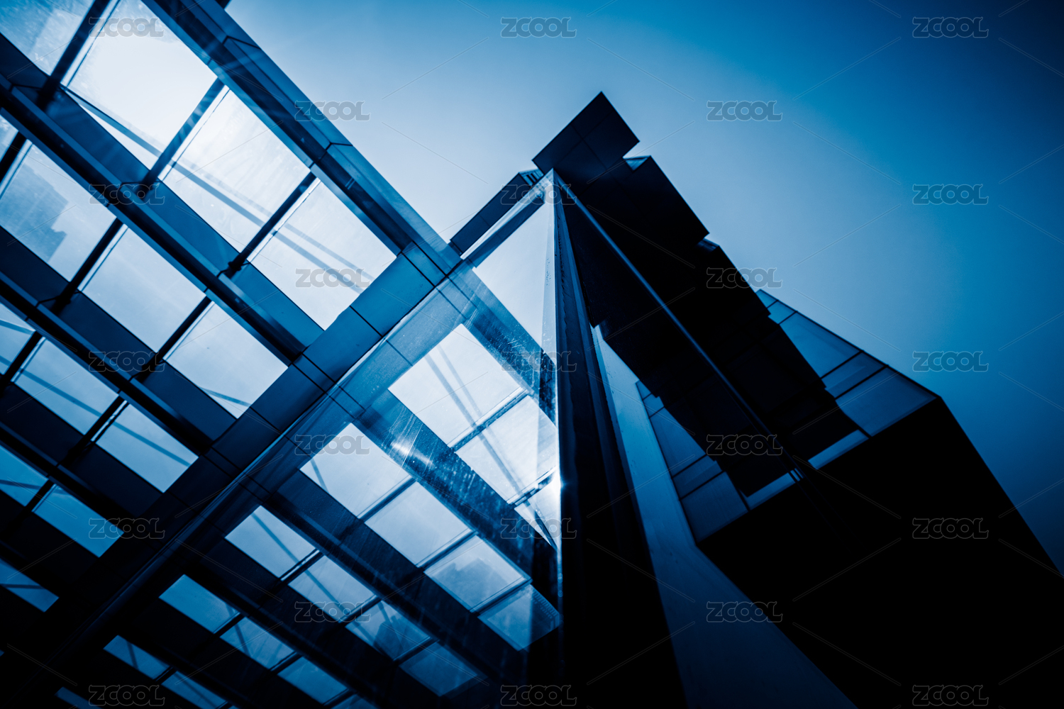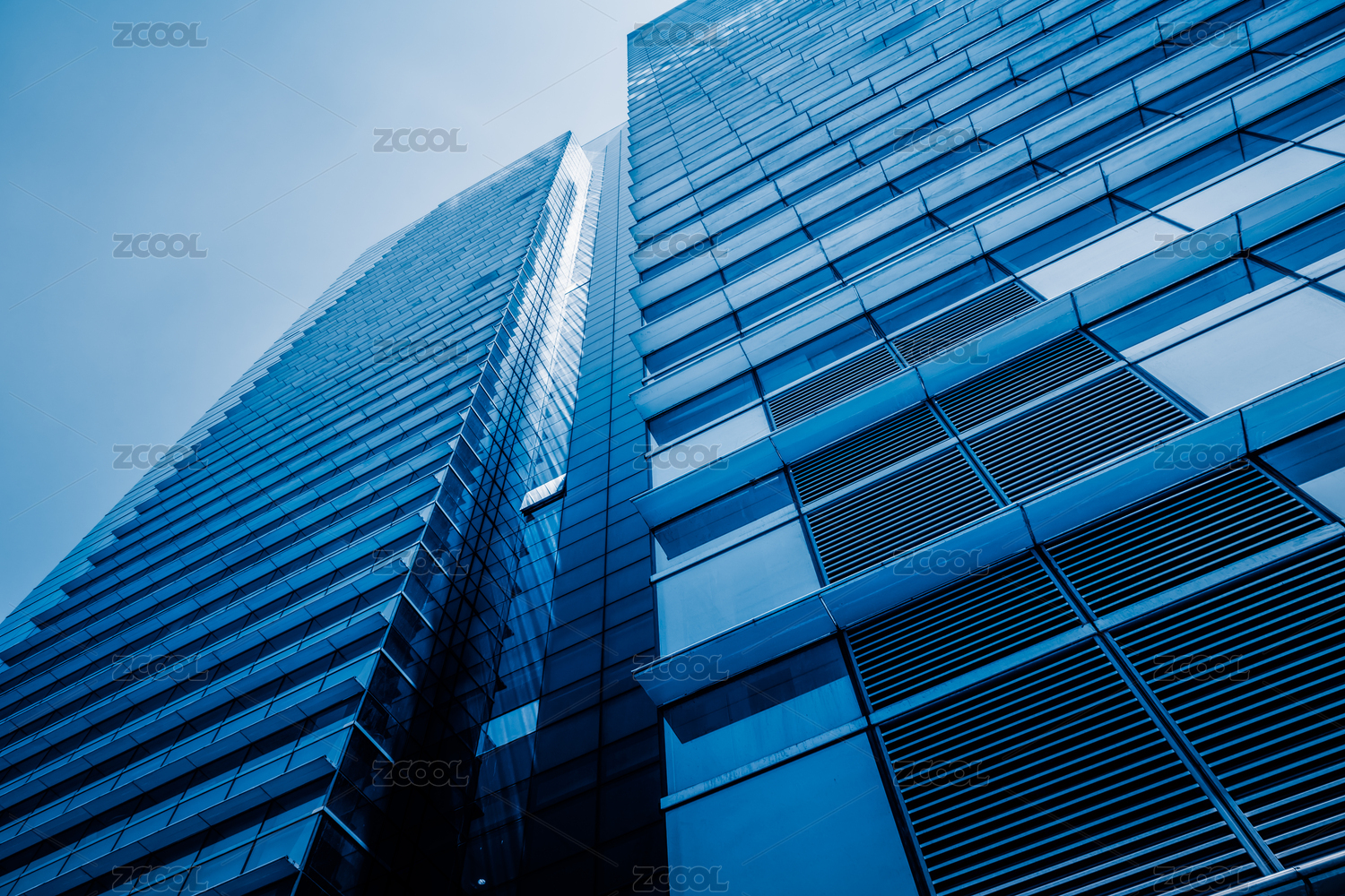 仰视钢结构建筑和现代建筑玻璃幕墙
