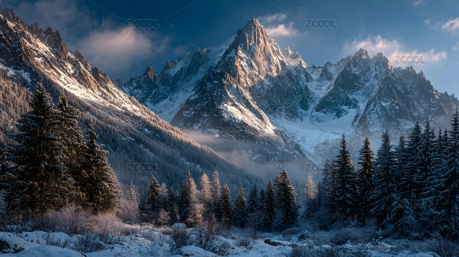 雪山森林冬日清晨