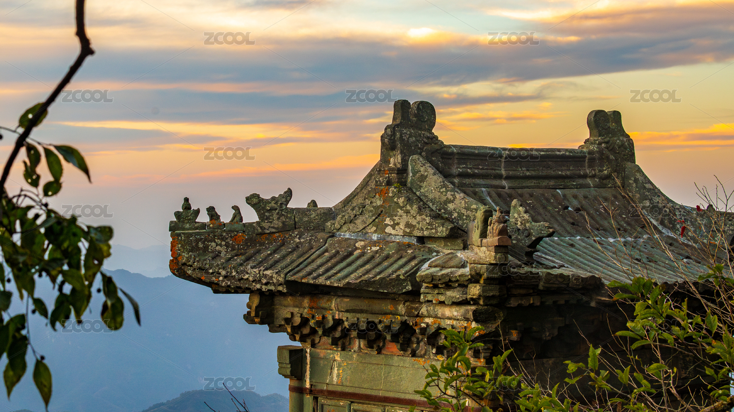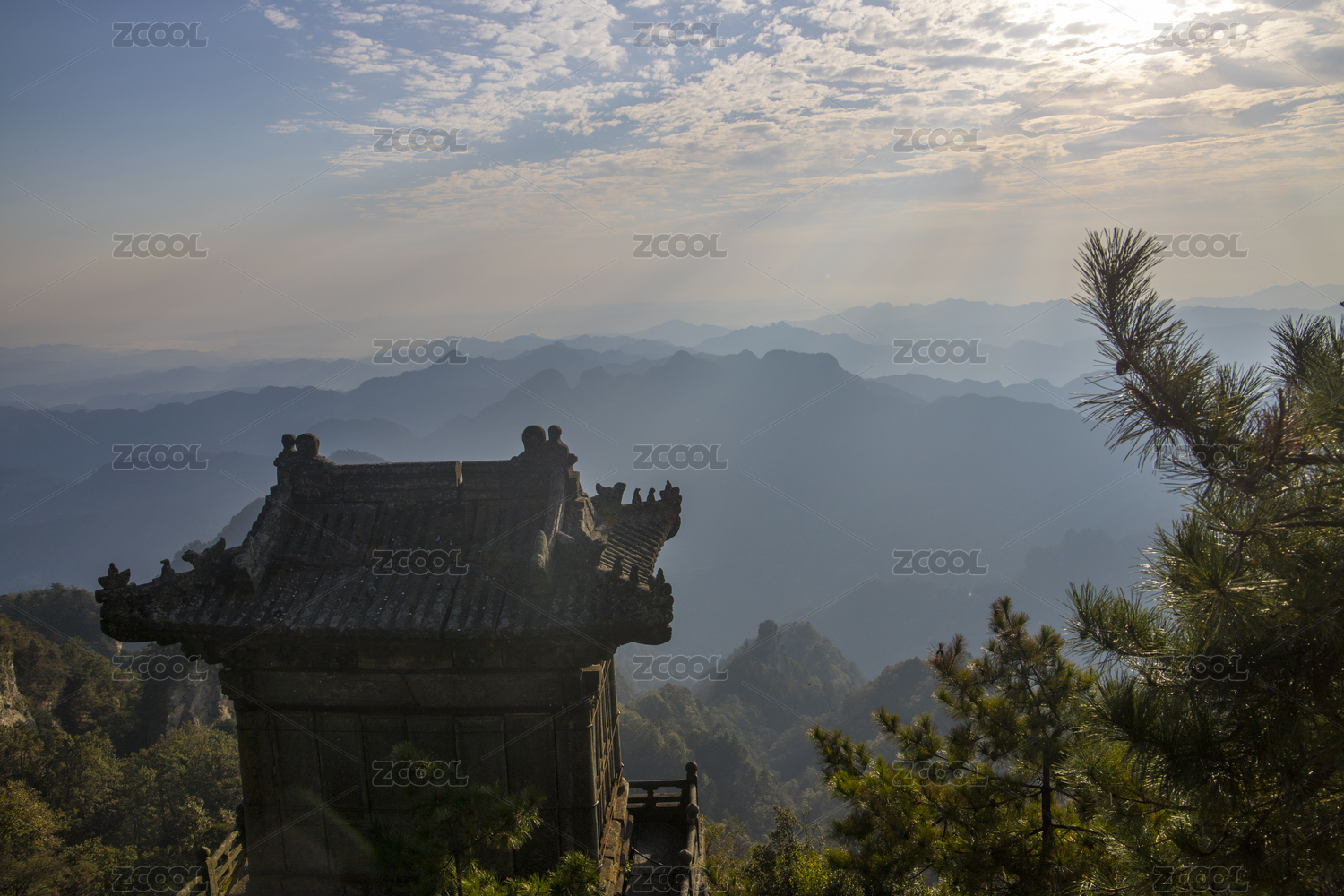 湖北十堰武当山山顶古建筑和自然风光