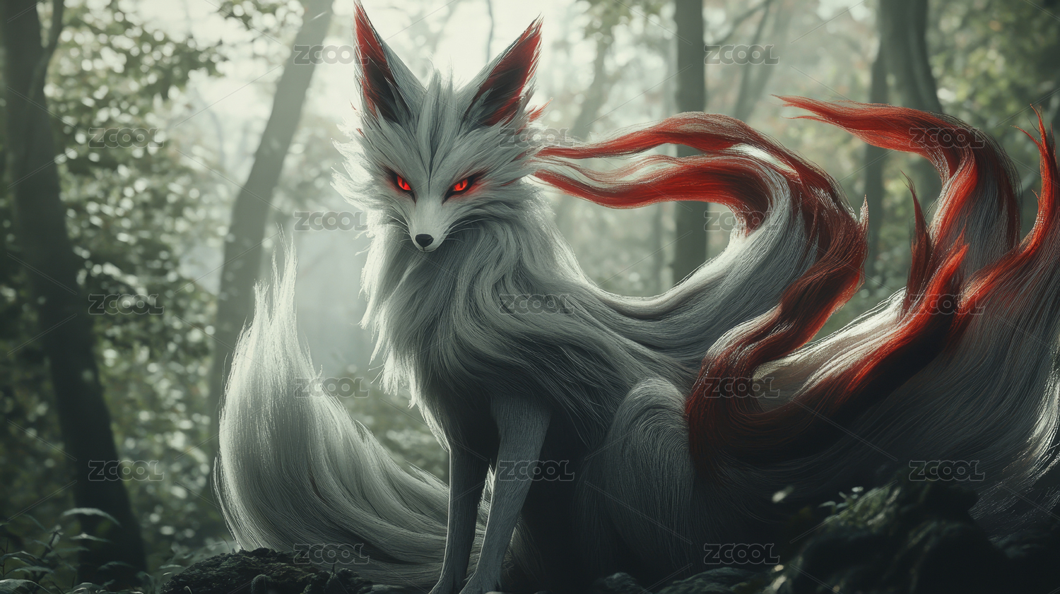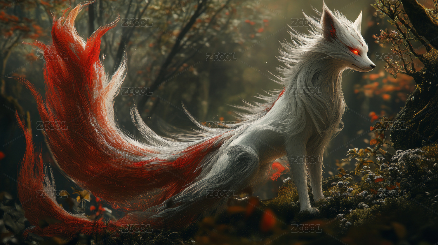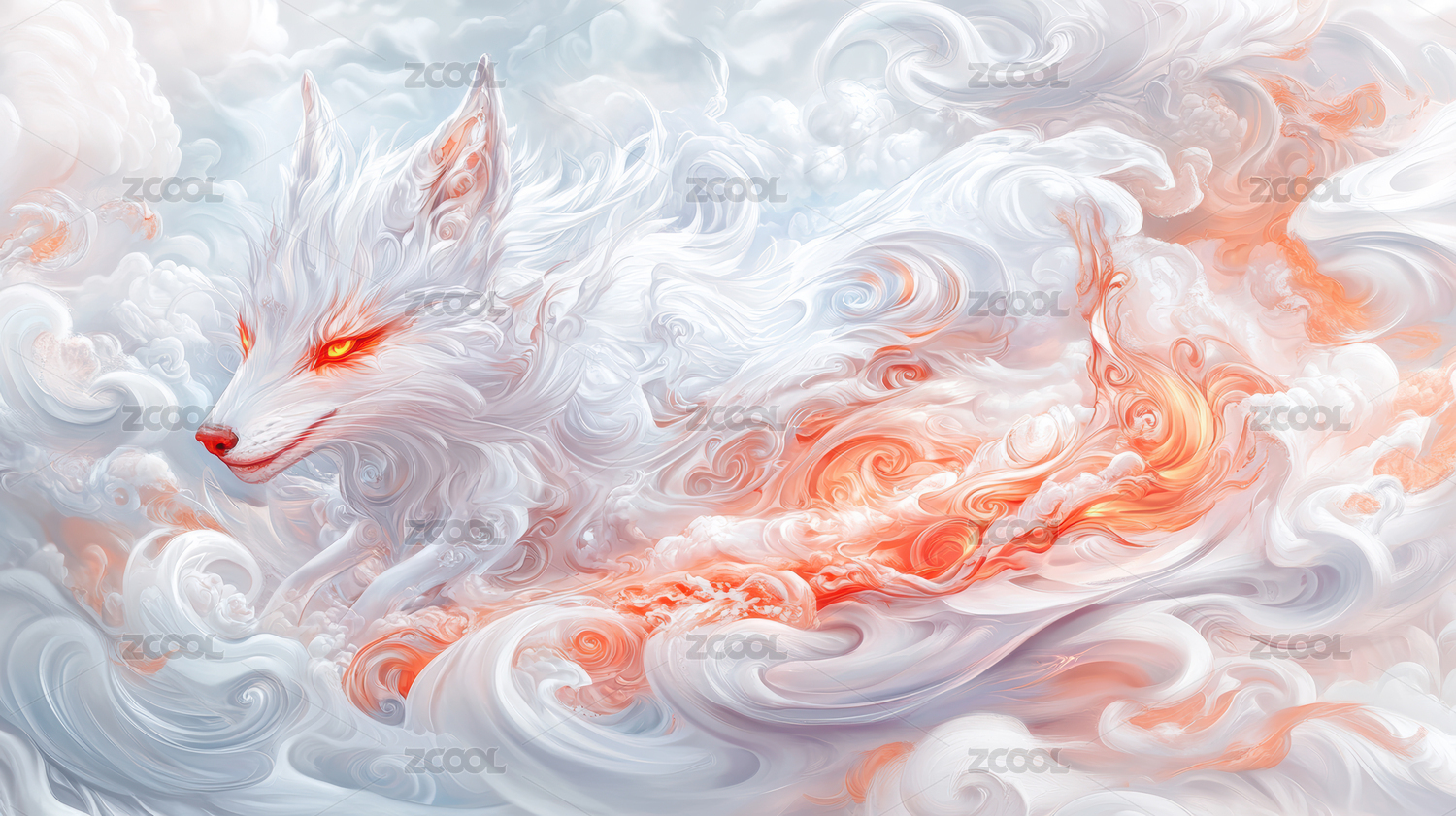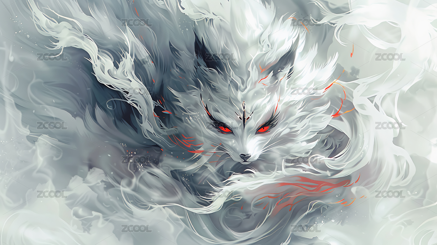 AIGC202407,山海经,神兽,神话,传说,中国风,国潮,古典,巨大,狐狸