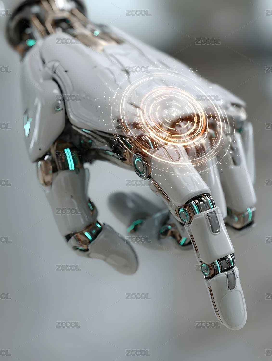白色机械手掌特写