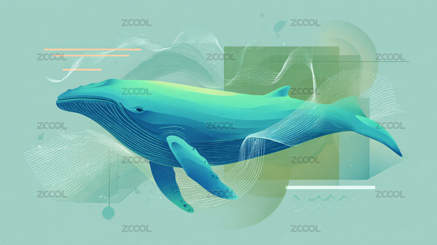 卡通矢量月球中畅游的鲸鱼和鱼群