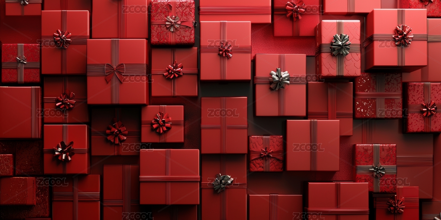 红色礼物与节庆氛围的艺术布景
