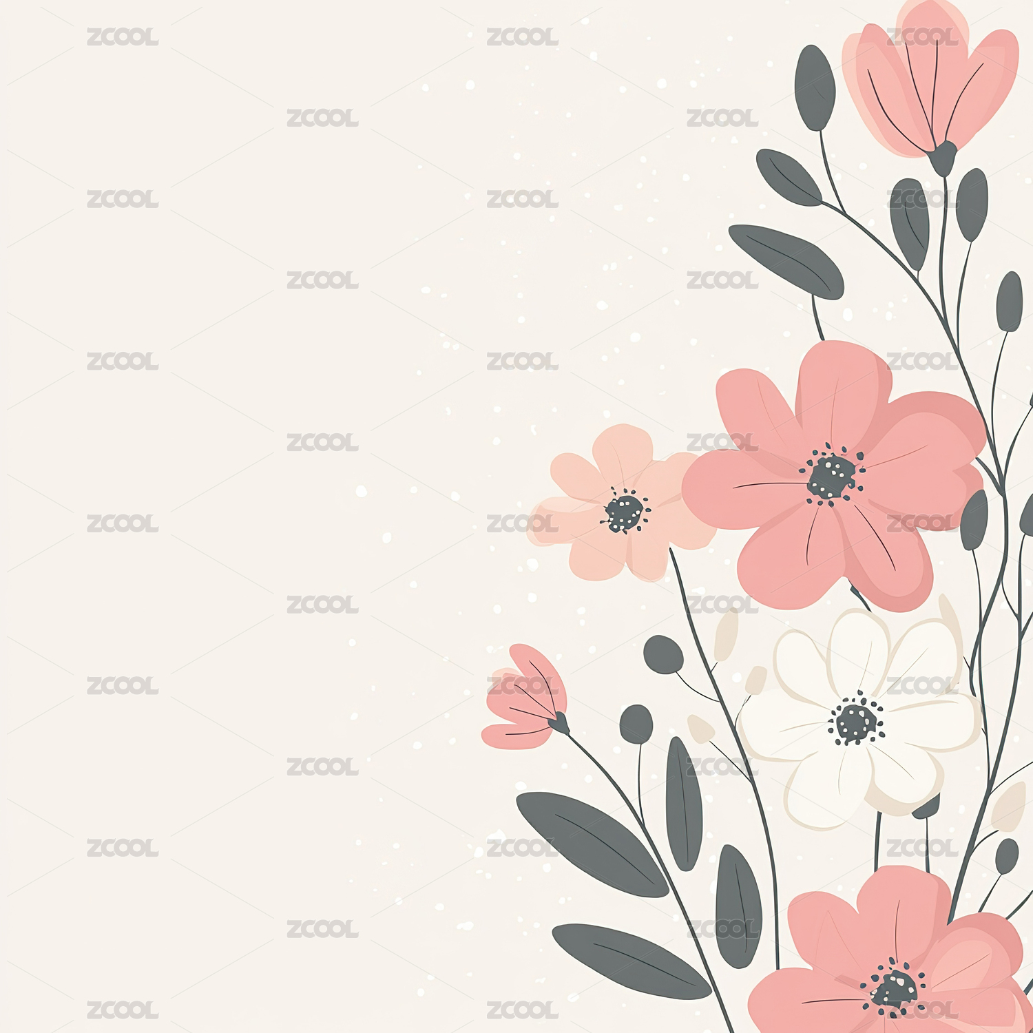 米色剪影花朵图案