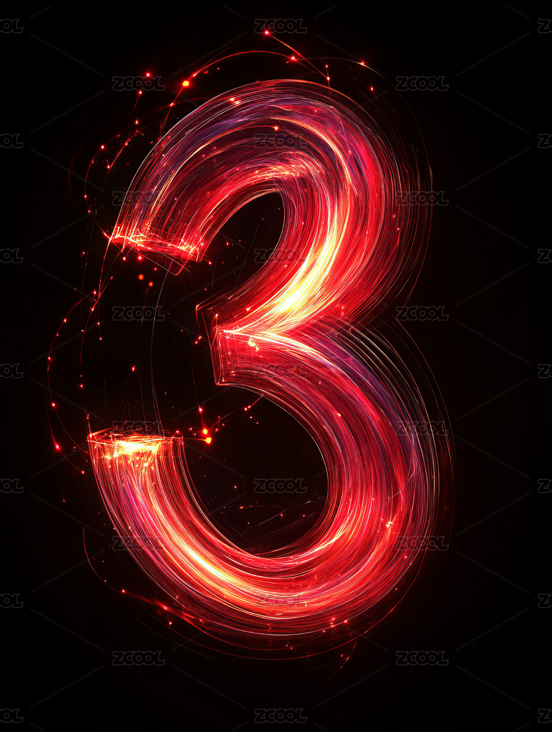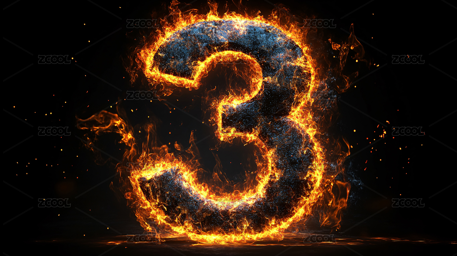 燃烧的数字3火焰特效图