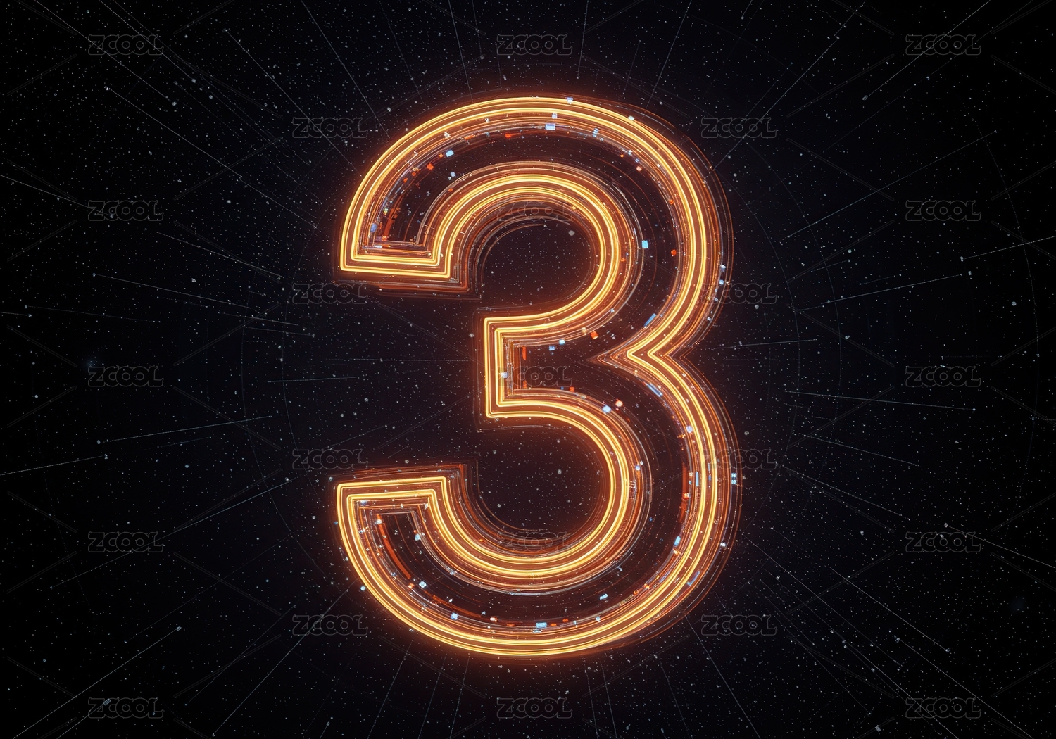 发光的数字三的3D渲染图
