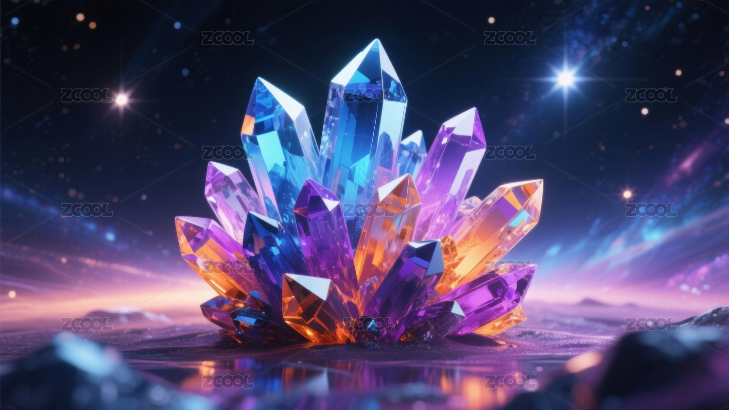 黑底原画魔力发光晶簇魔法宝石灯3D插画