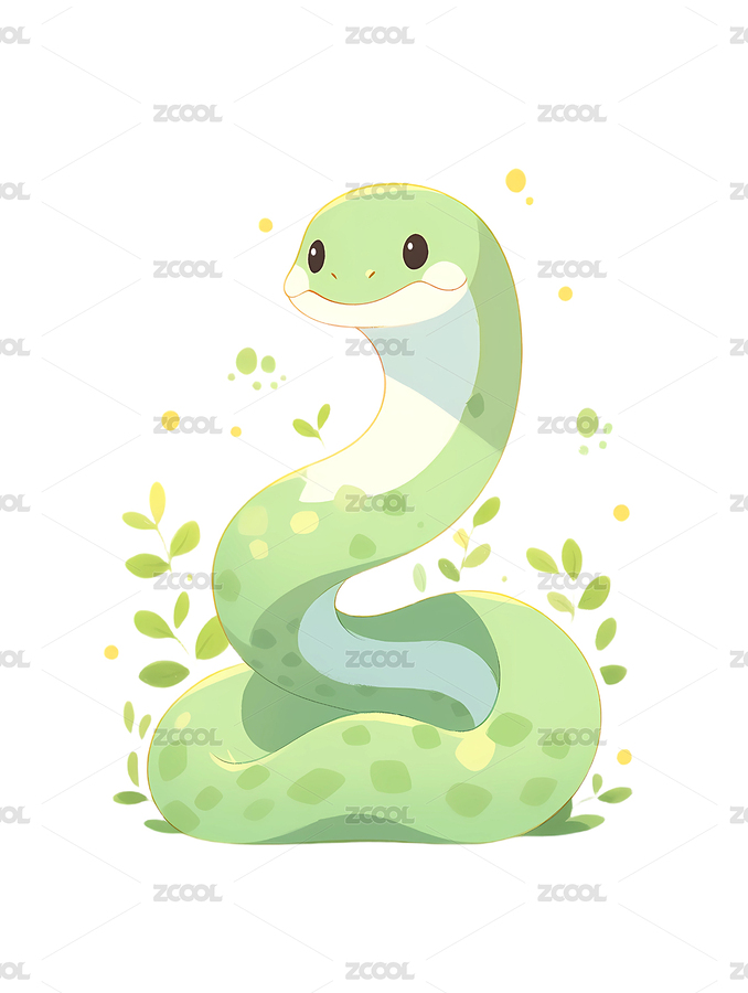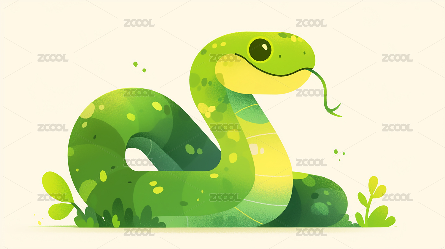 清新明亮一条可爱弯曲盘绕的蛇插画绘画