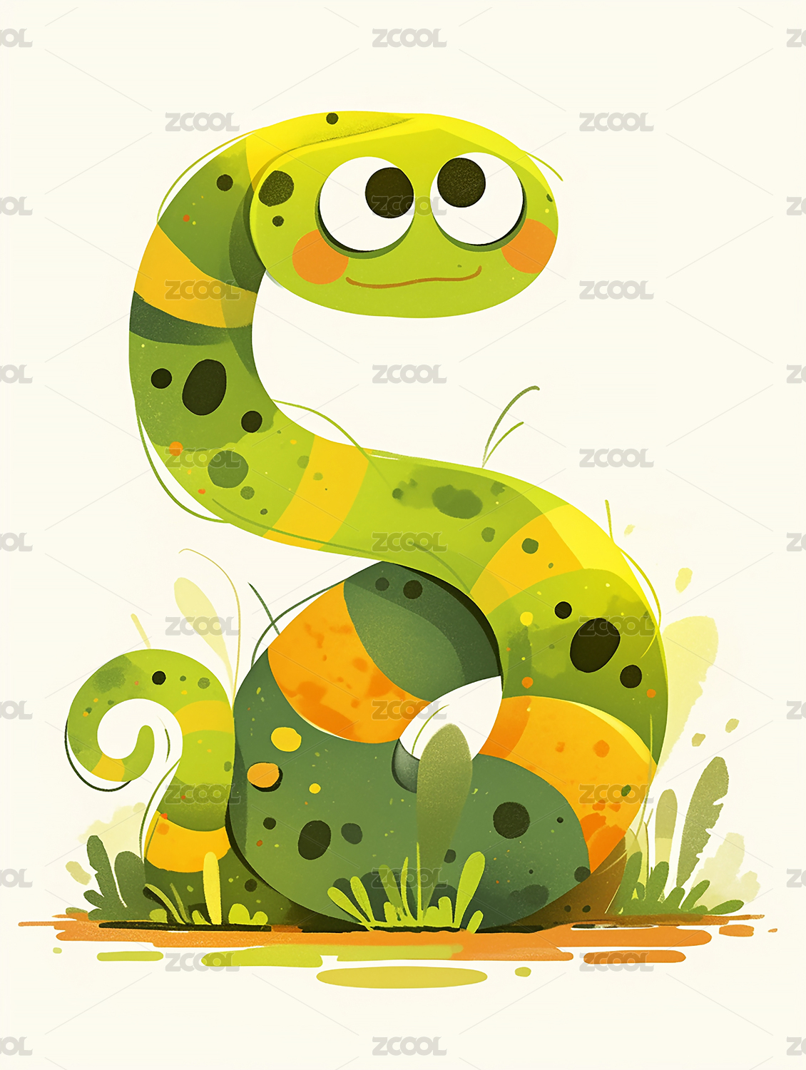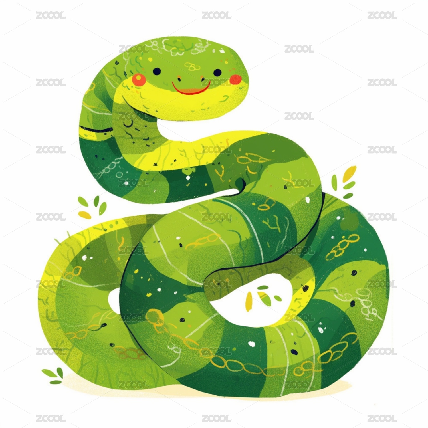 可爱,插画,生肖蛇,蛇,儿童,涂鸦,活泼,开心,彩色,调皮