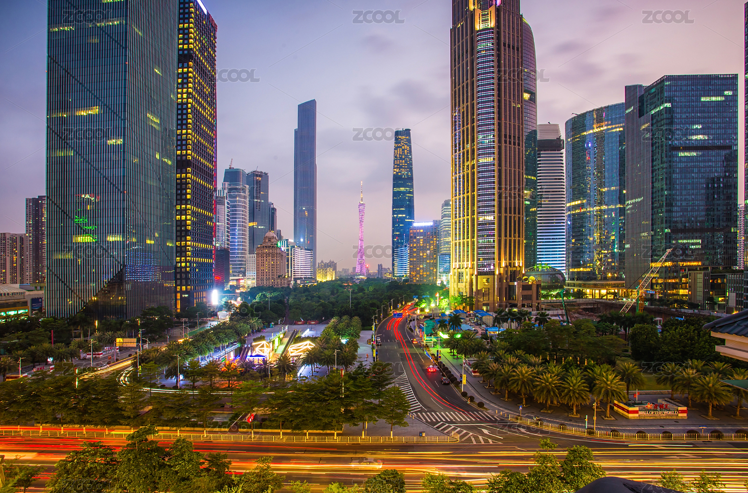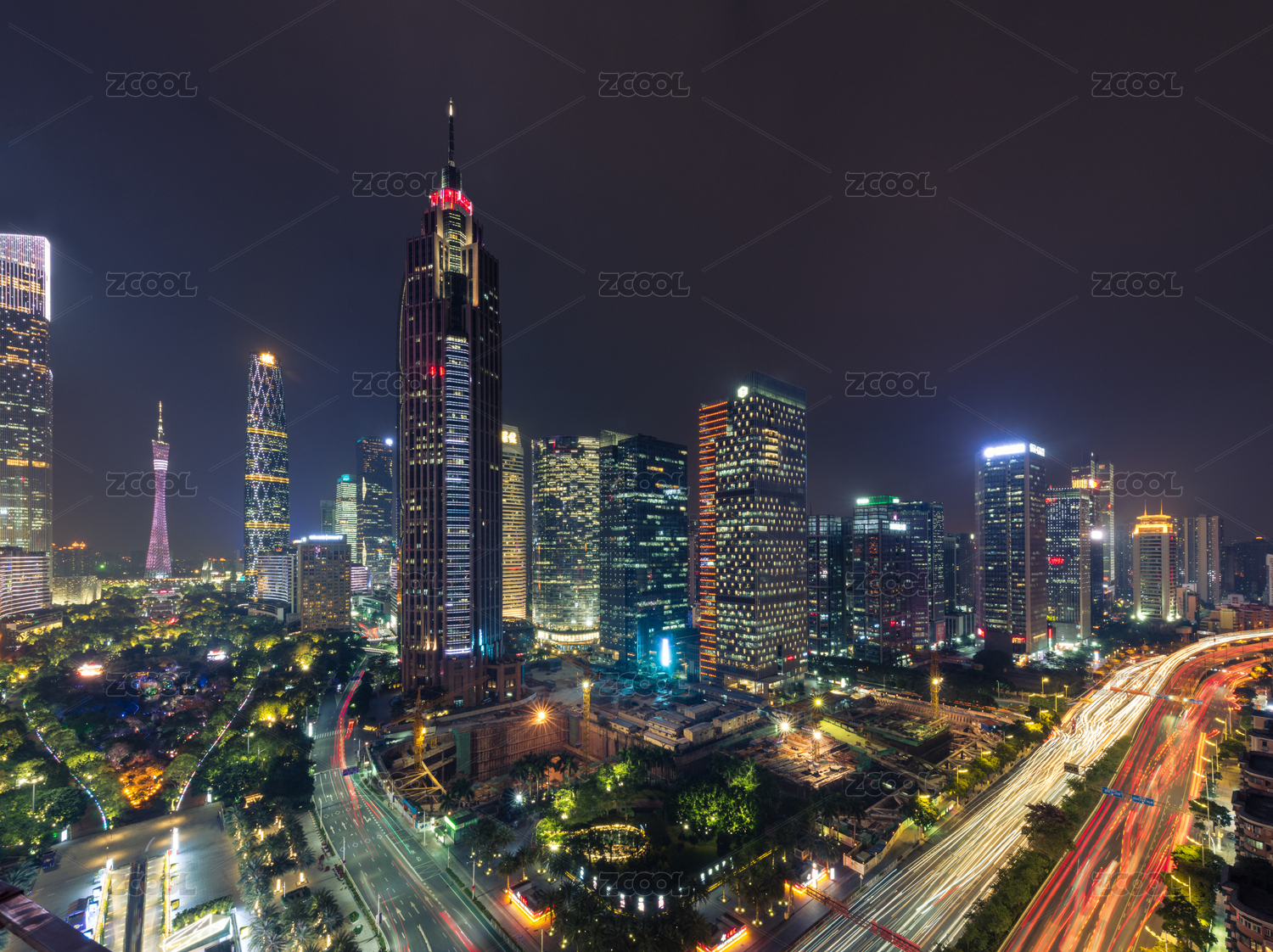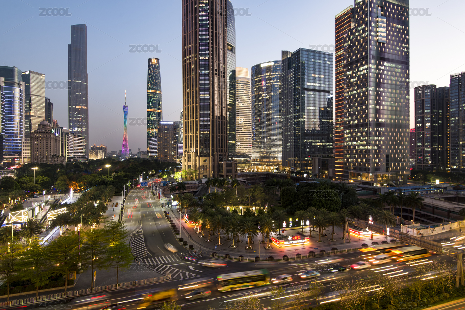 City night scenery bustling city modern financial district Guangzhou China Asia