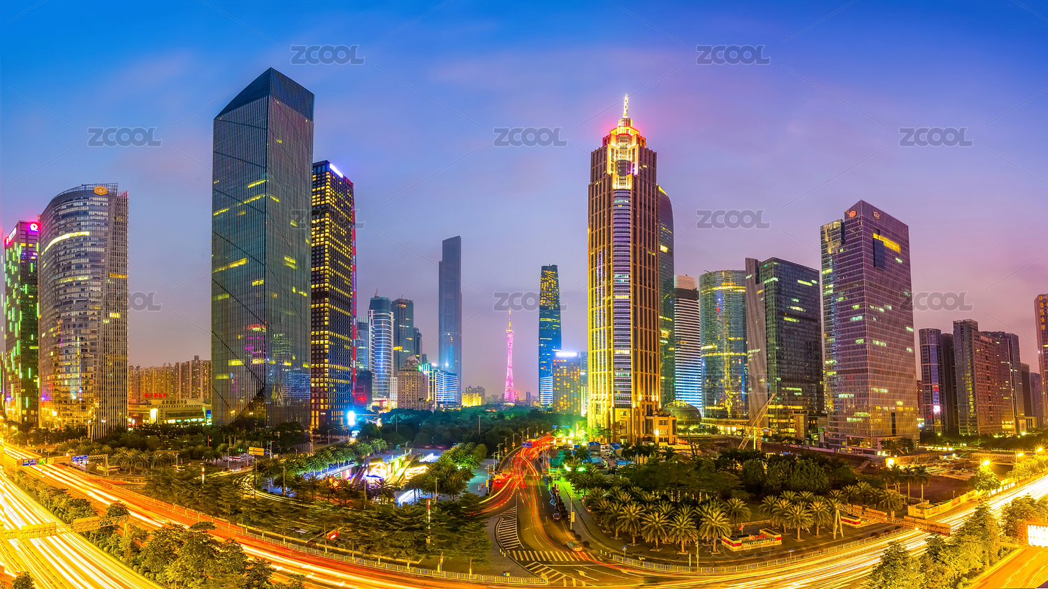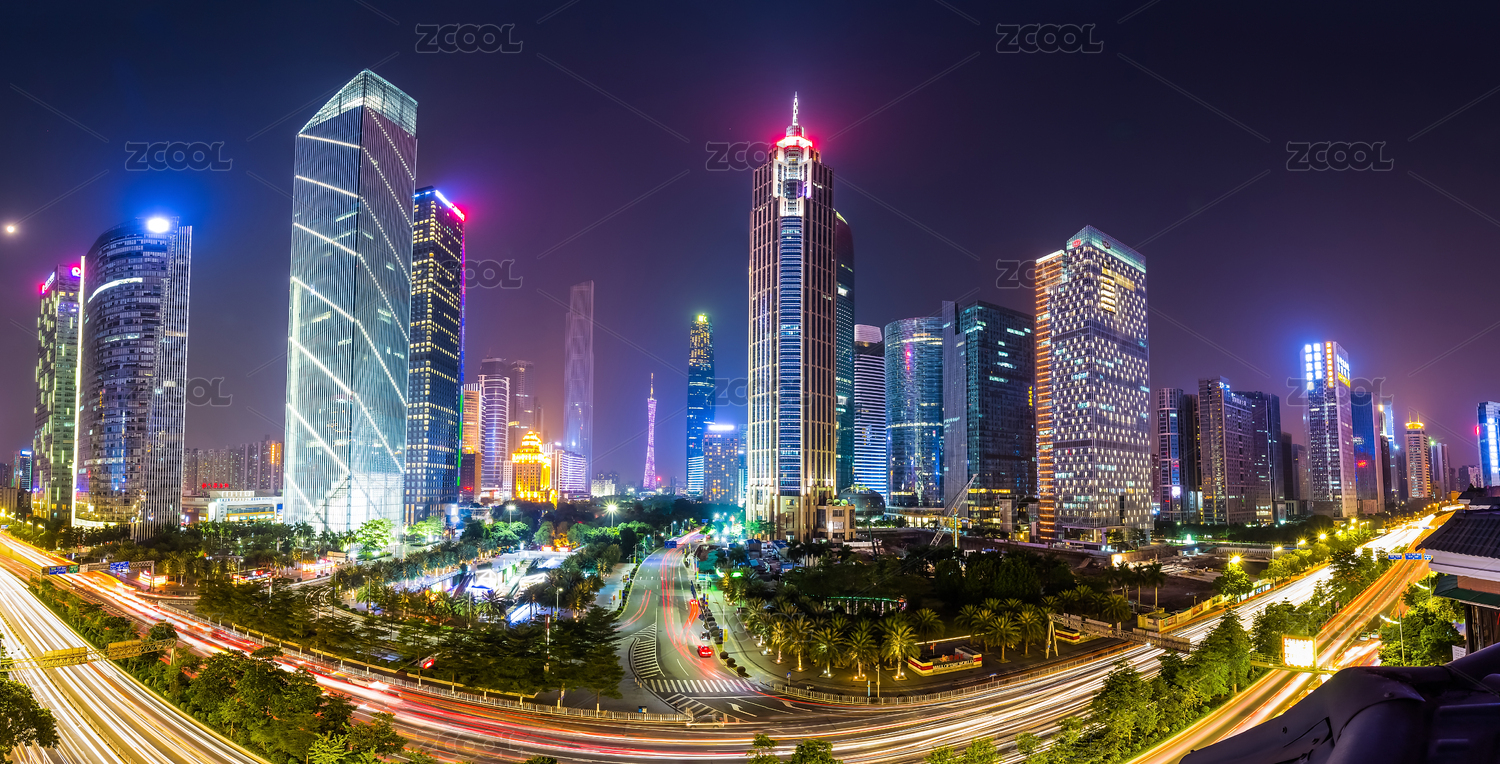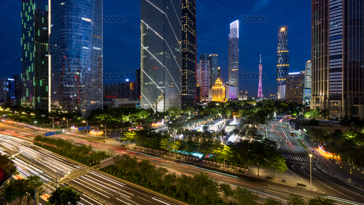 City night scenery bustling city modern financial district Guangzhou China Asia