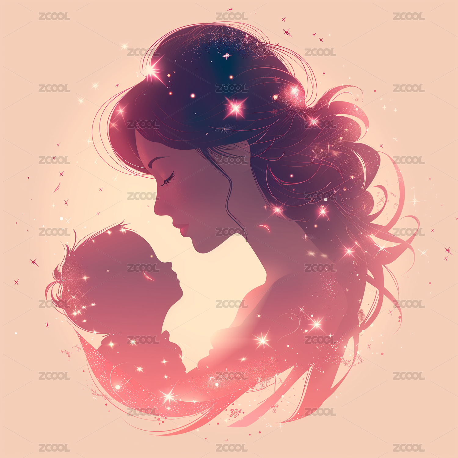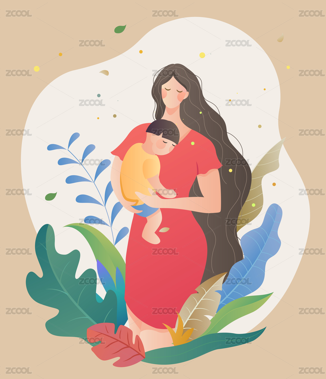 相拥的母子母亲节插画