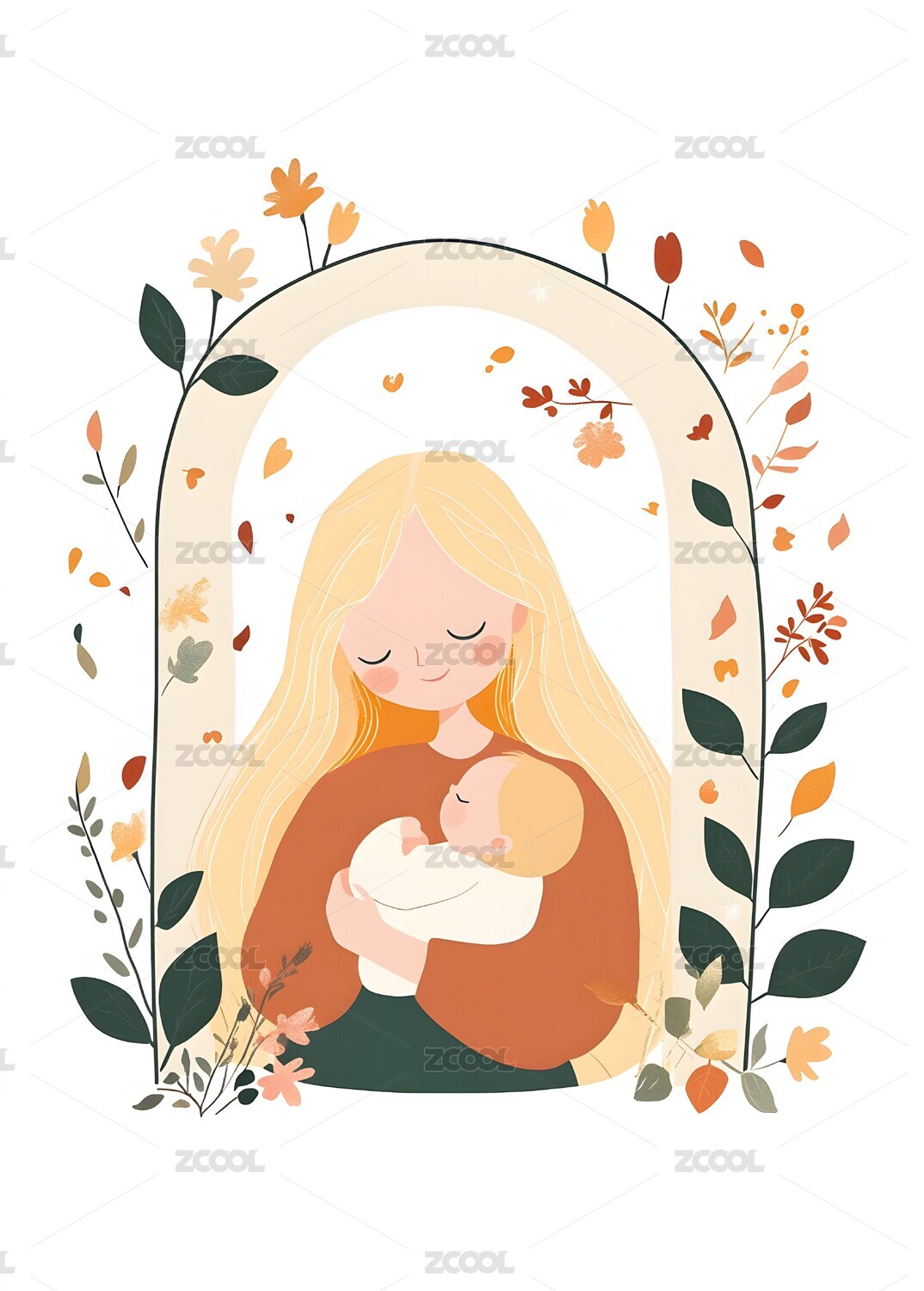 母亲抱着宝宝亲子插画