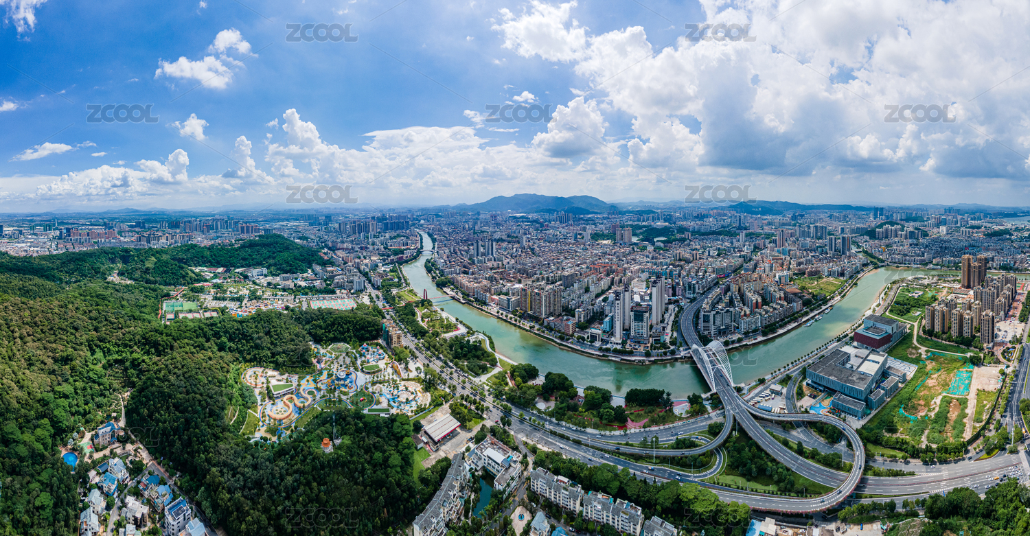 航拍视角,广东省,城市天际线,江门,无人,户外,城市,白昼,河流,天空