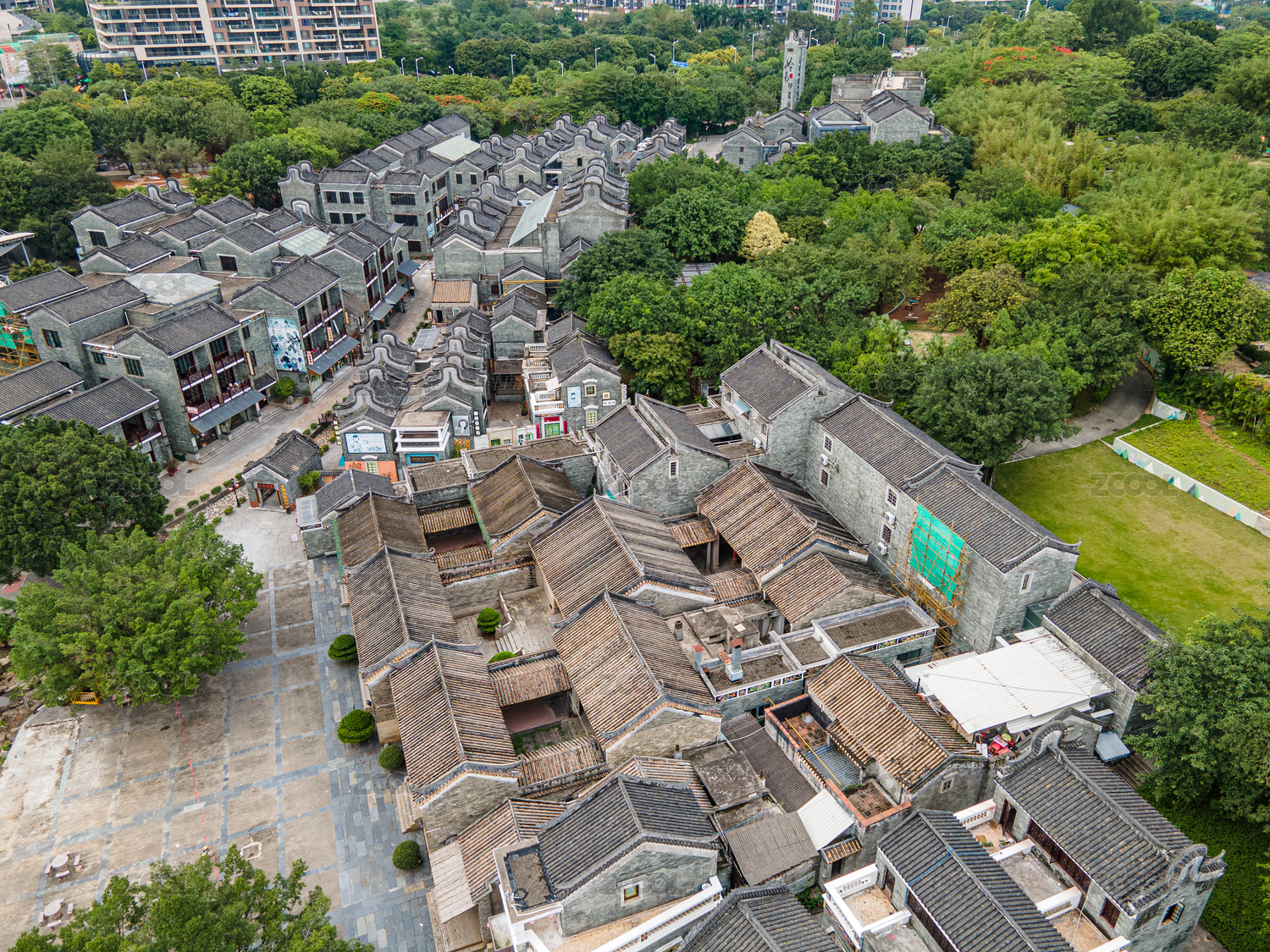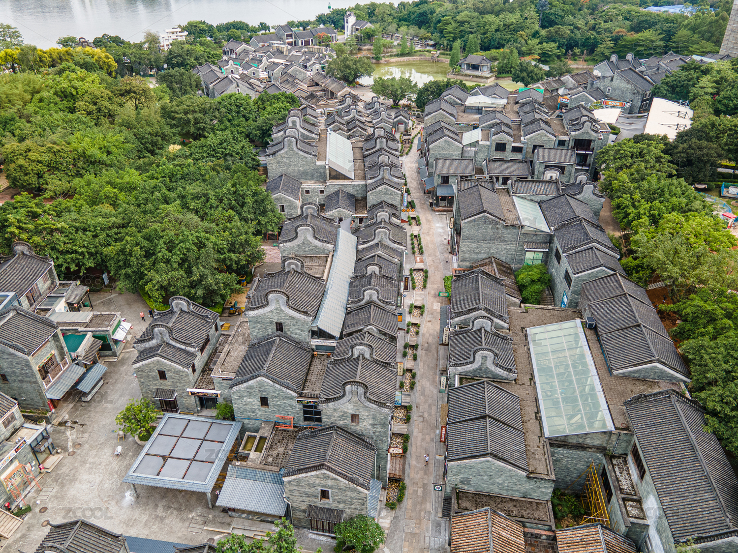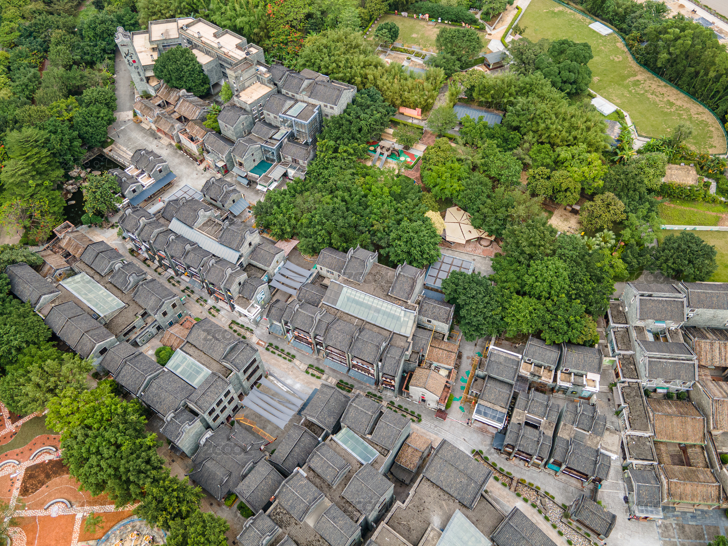 中国,广州,岭南印象园,建筑,古建筑,屋檐,屋顶,锅耳墙,景观,航拍