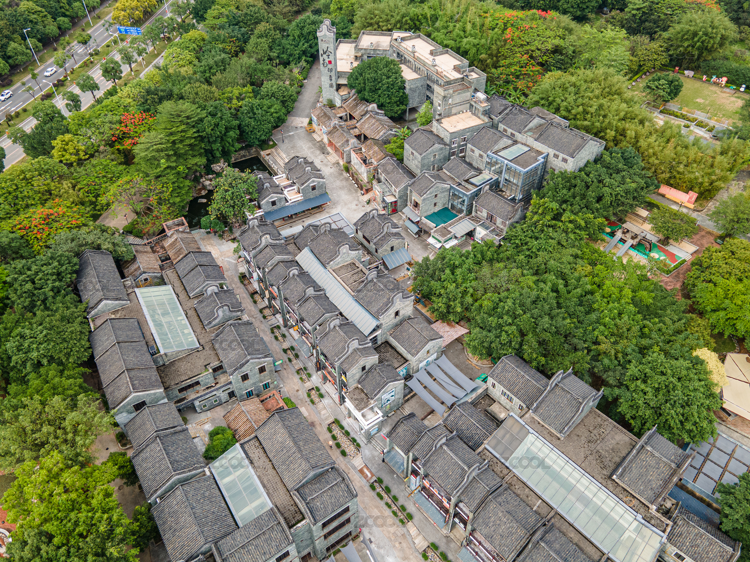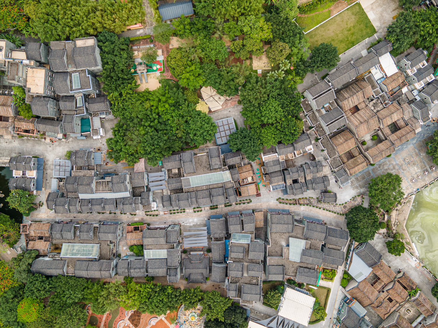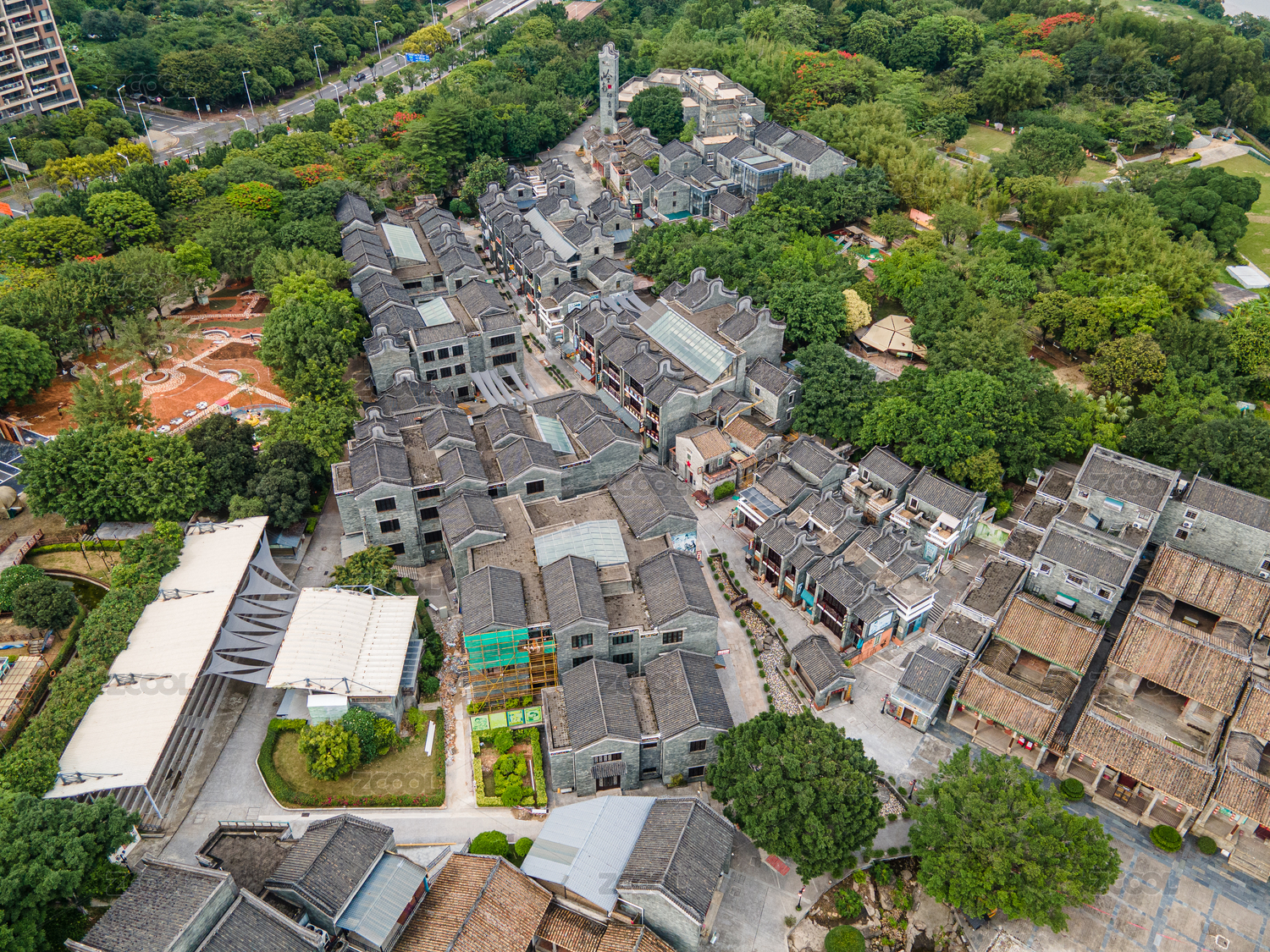 中国,广州,岭南印象园,建筑,古建筑,屋檐,屋顶,锅耳墙,景观,航拍