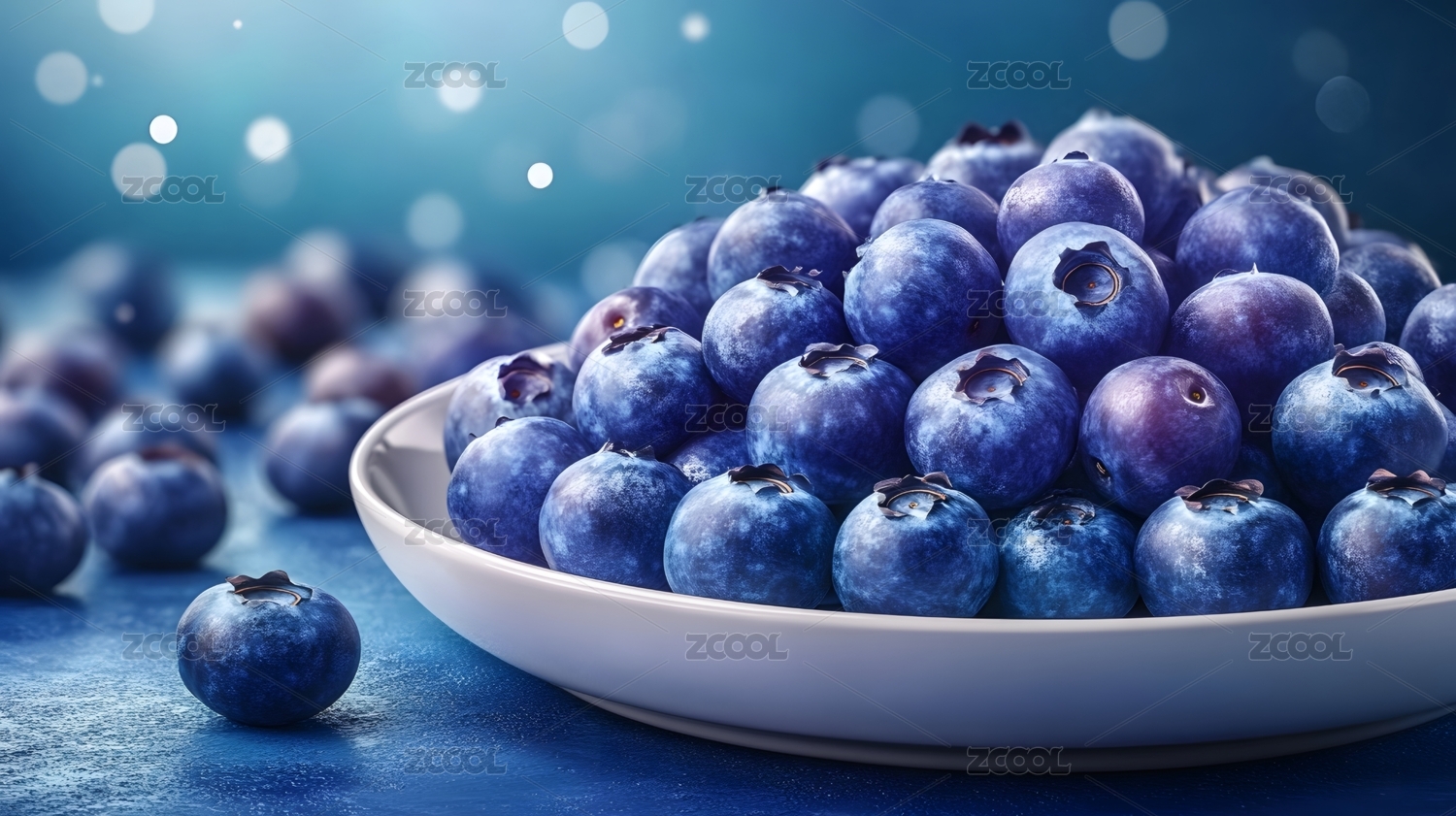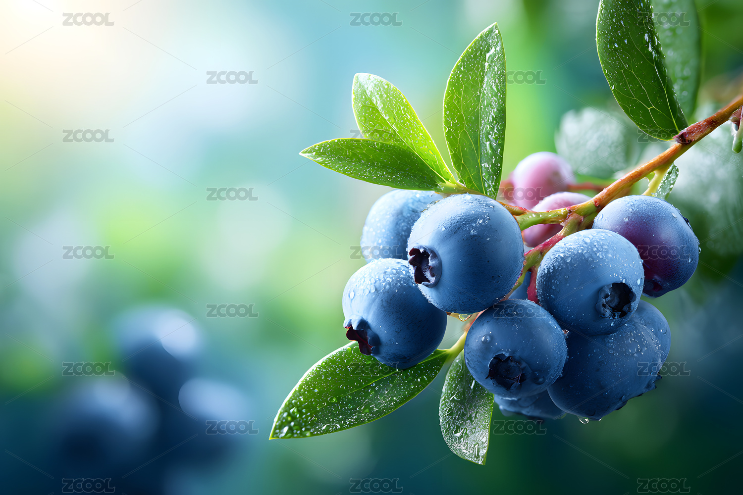 新鲜蓝莓与水珠的清新诱惑