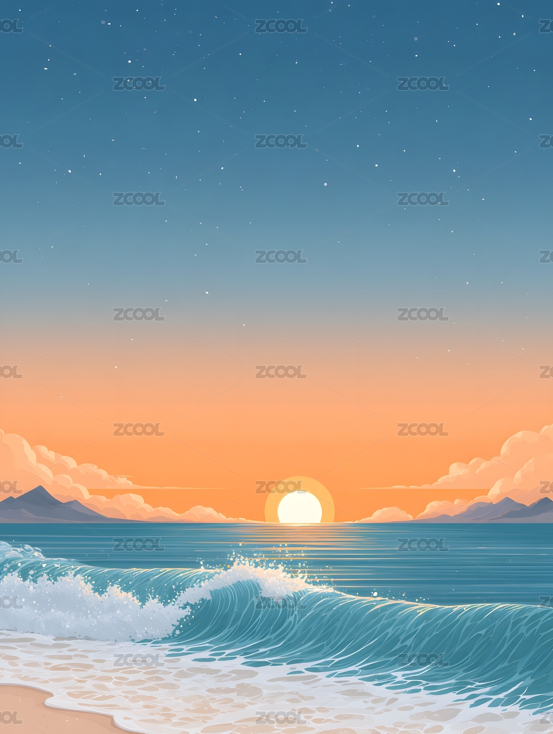 海边日落时海浪与星空美景