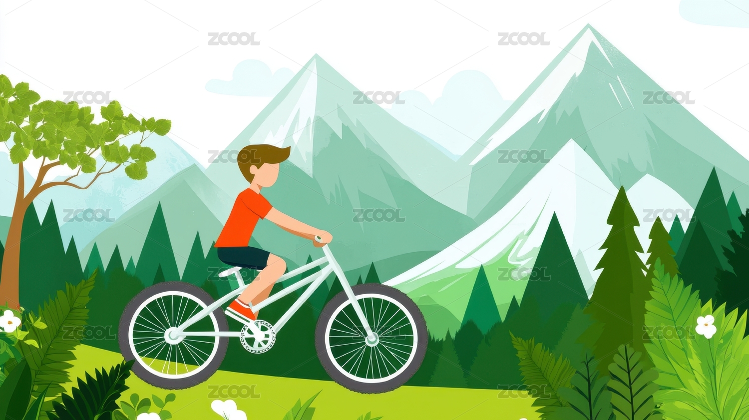 户外骑山地车插画