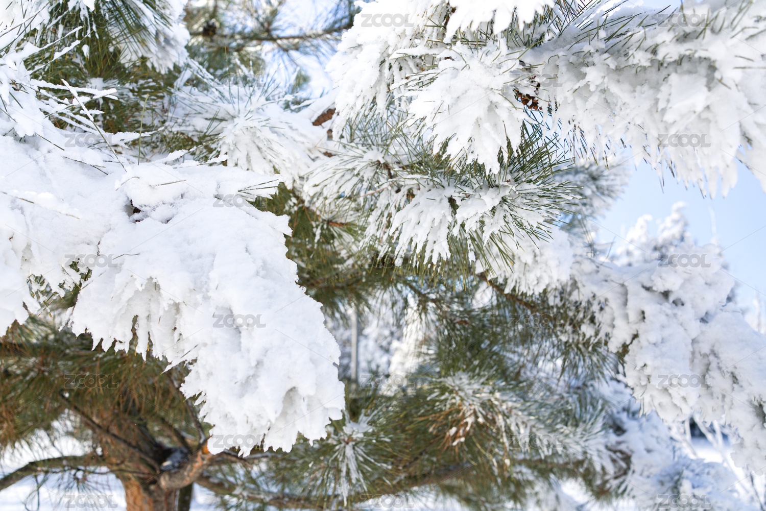 白雪压在青松枝条上