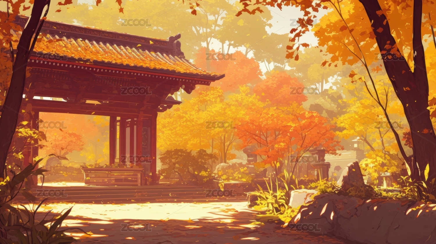 壁纸,秋天,秋日,银杏,树,叶子,金黄,白露,AIGC202402,国风