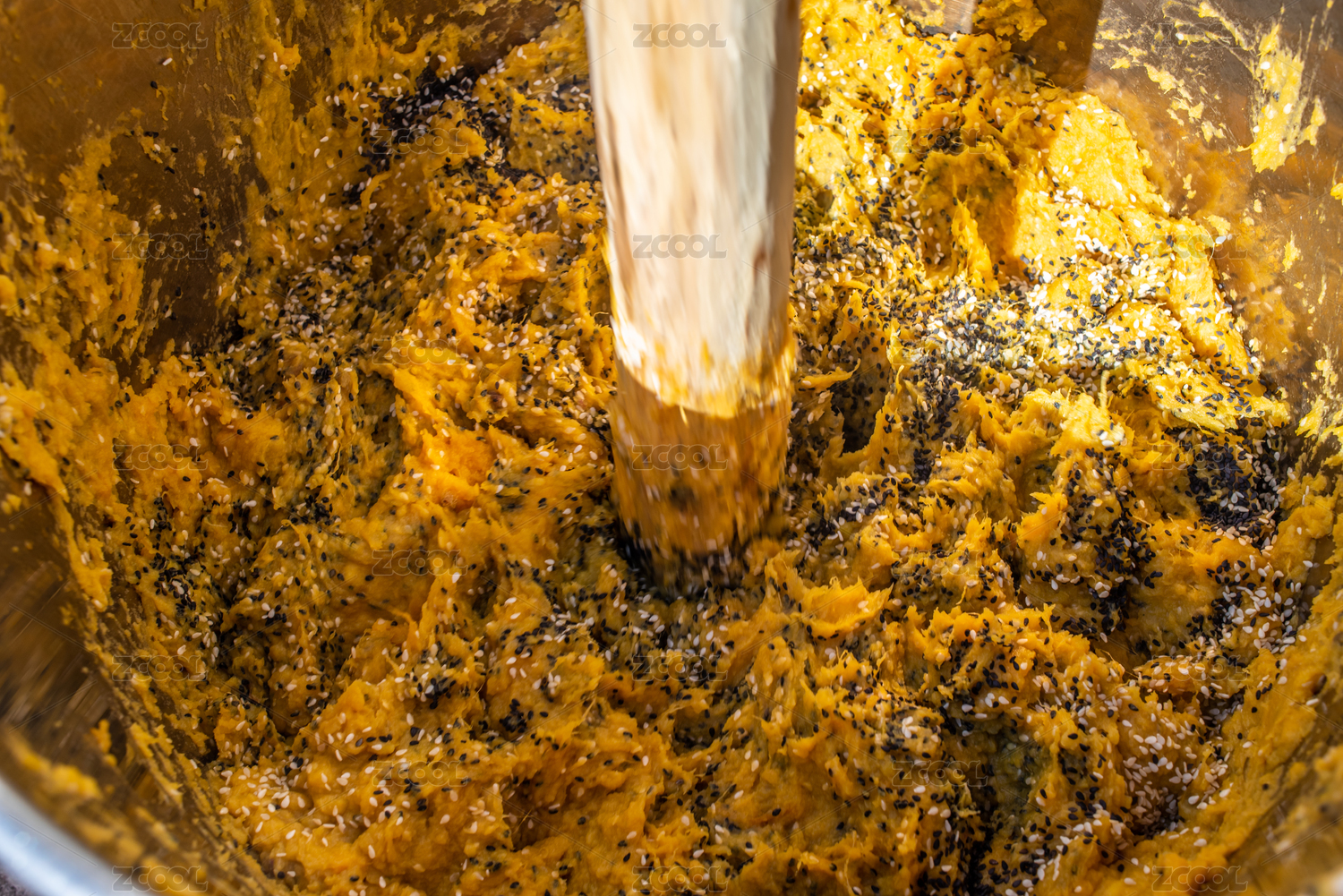 在蒙古包内用传统工艺熬煮制作奶豆腐过程