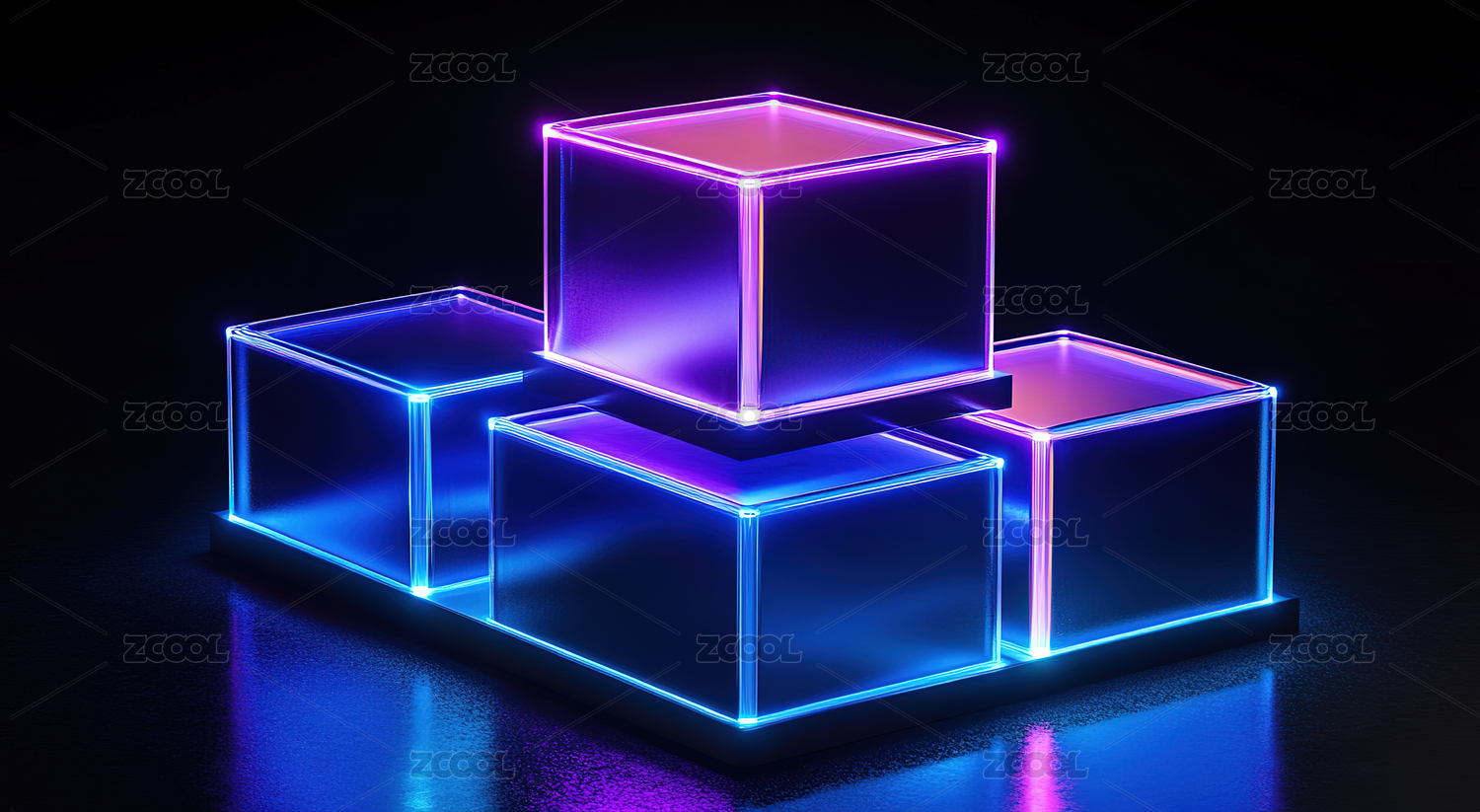 抽象霓虹灯发光几何线条3D渲染商务背景