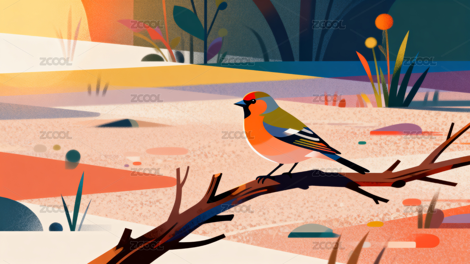 清新治愈树枝上可爱简单的彩色小鸟插画
