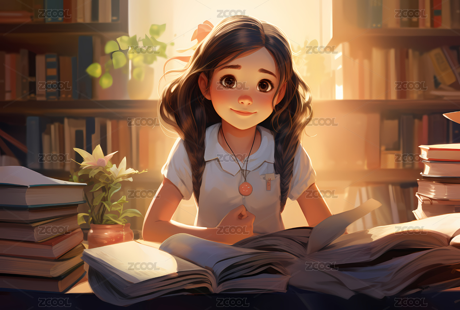 插画,背景,壁纸,人物,学生,复习,看书,备考,可爱,卡通