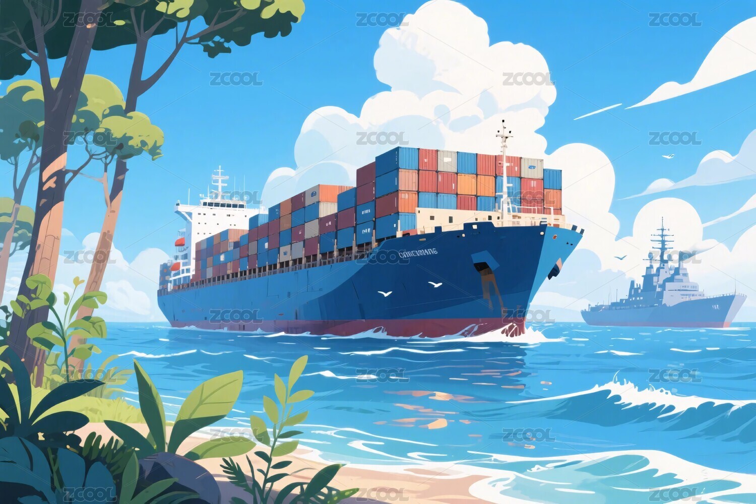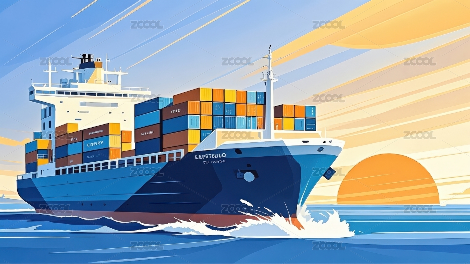 一艘装满集装箱的远洋货轮 轮船矢量插画