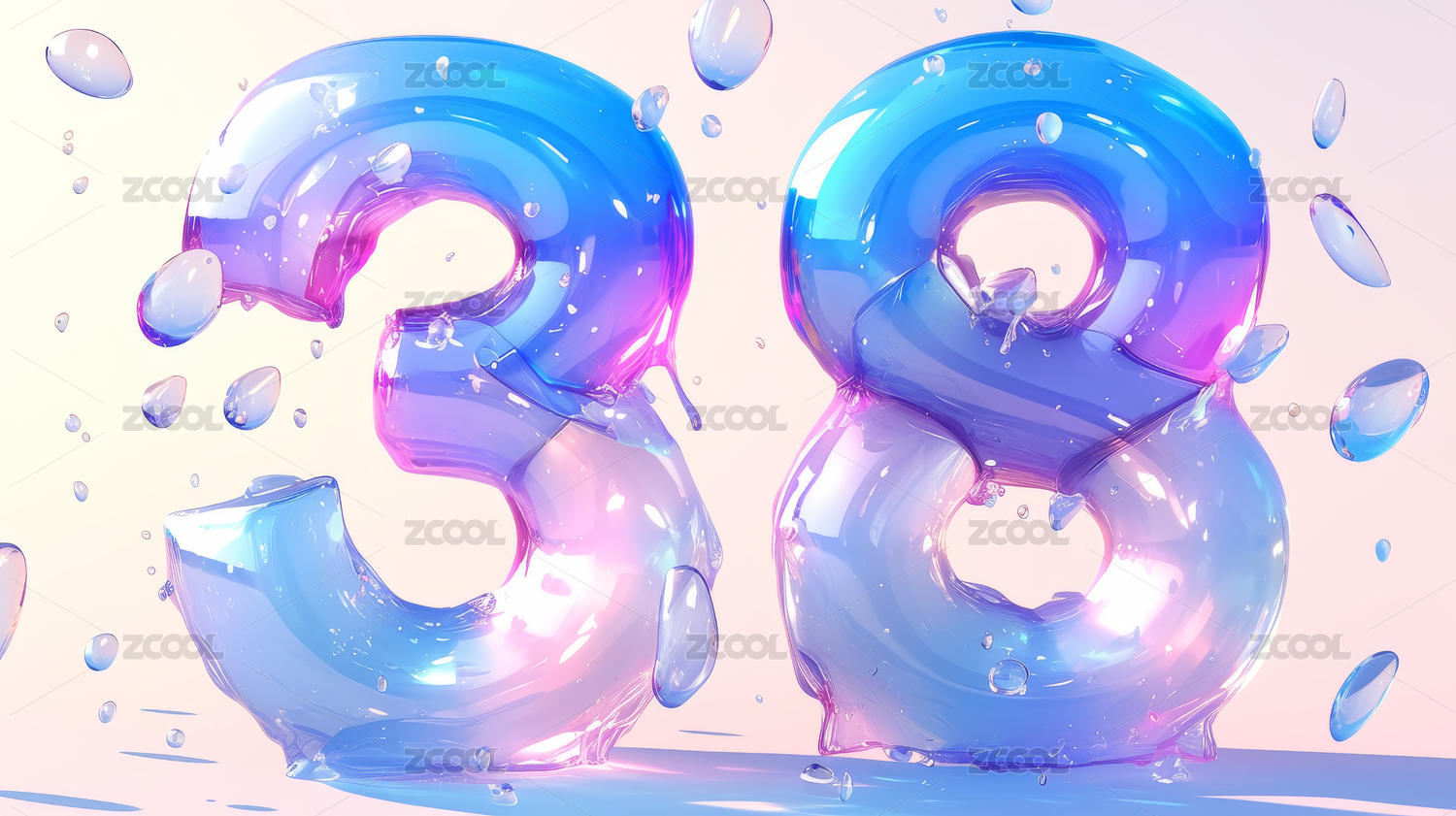 3D紫色立体38数字