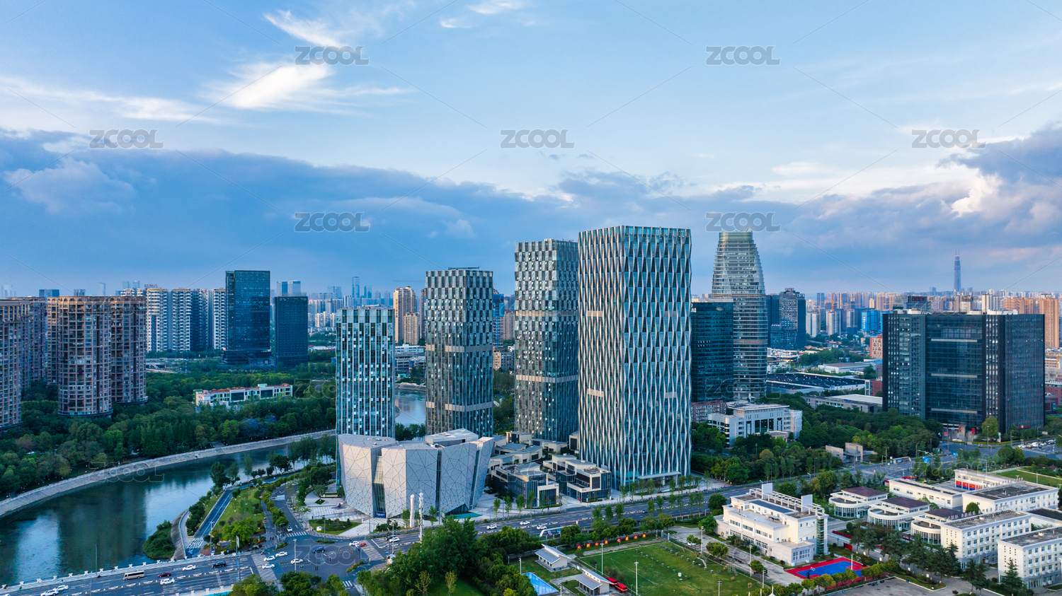中国上海浦东前滩中心航拍城市建筑风光夜景