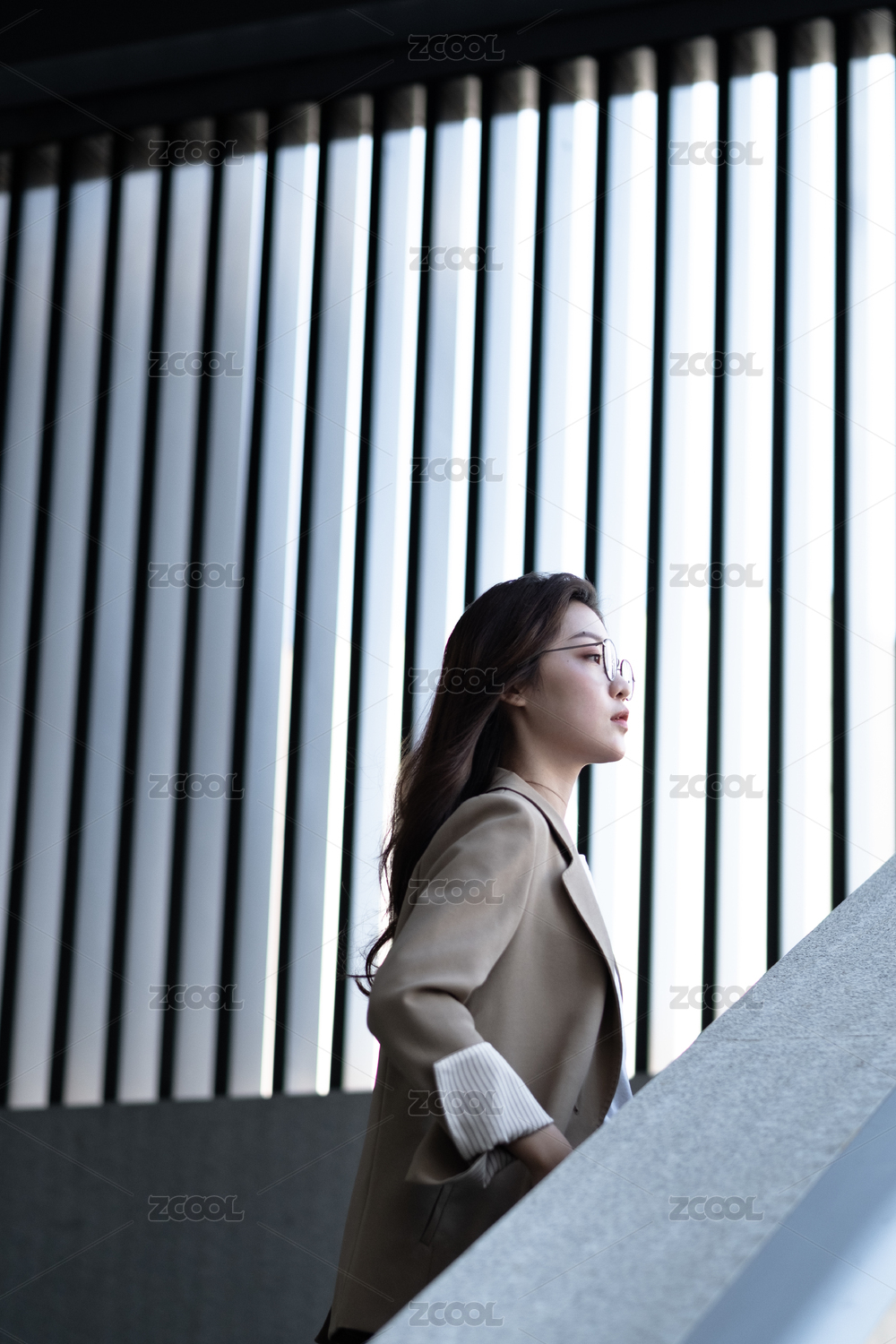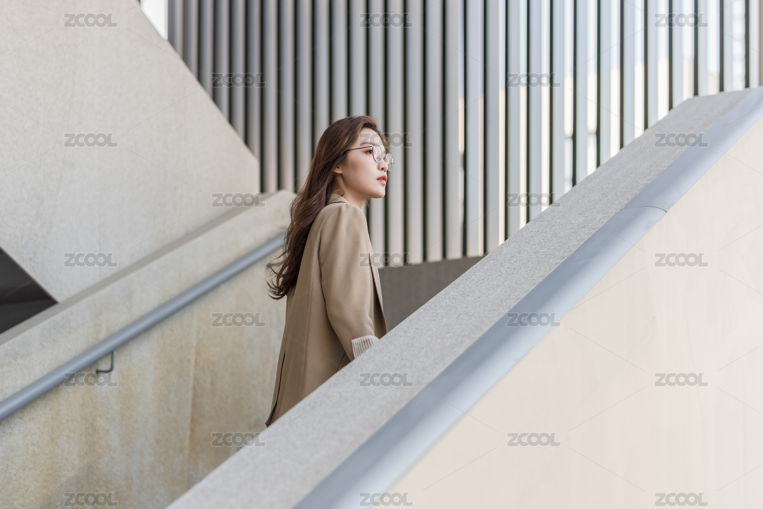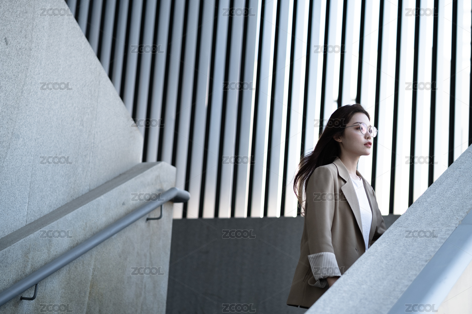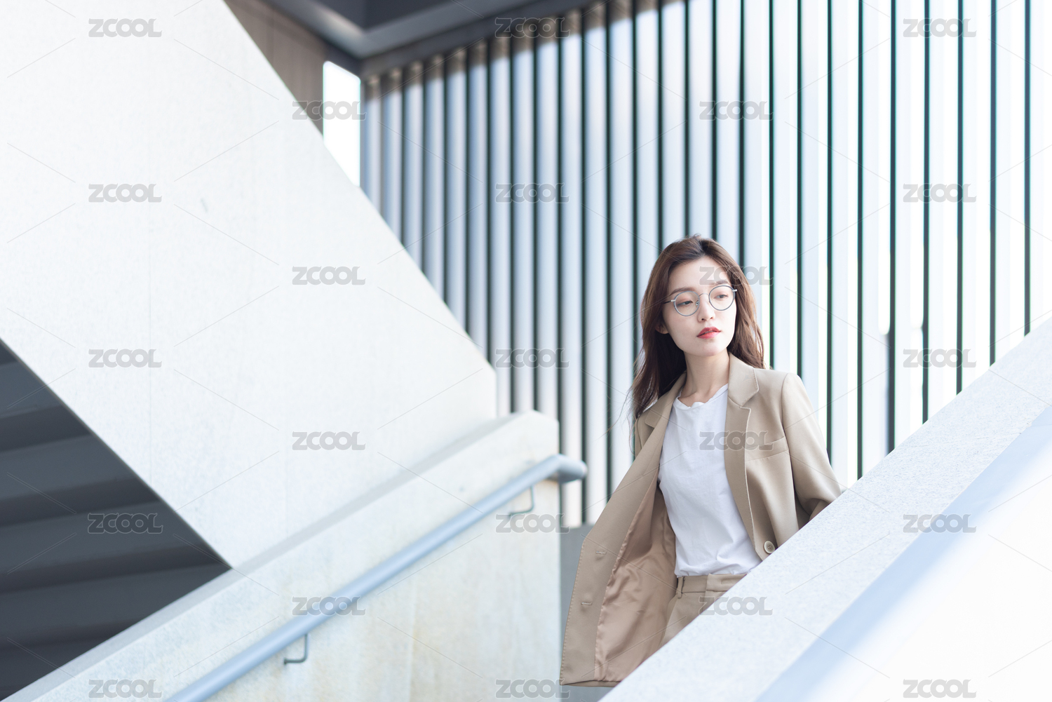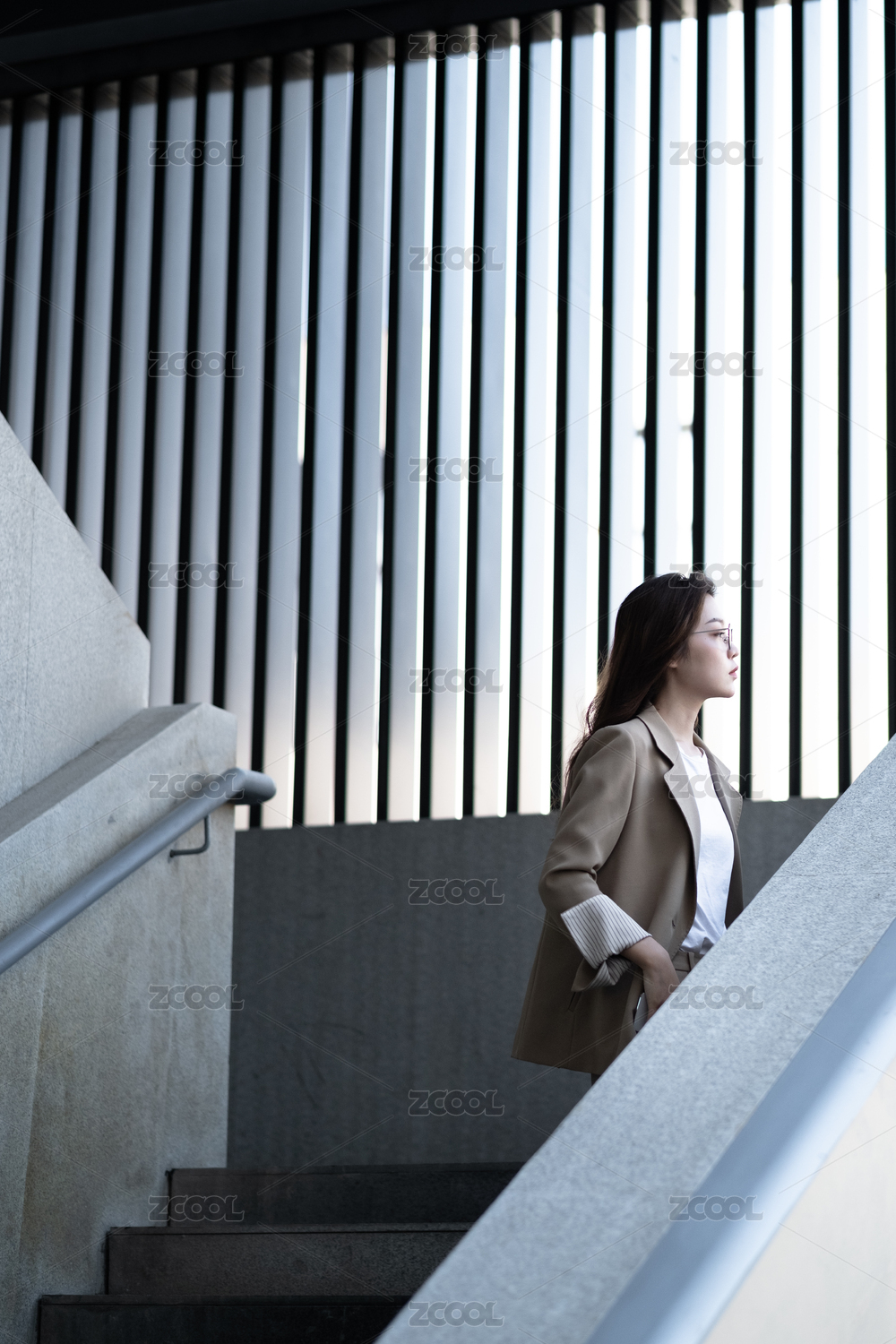 年轻女白领在楼梯上