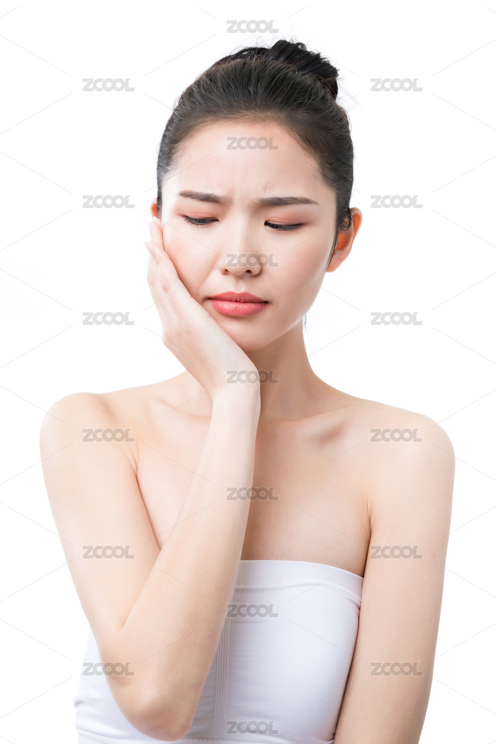 一个亚洲中国人摸着自己神经疼痛酸痛的牙周炎的牙齿