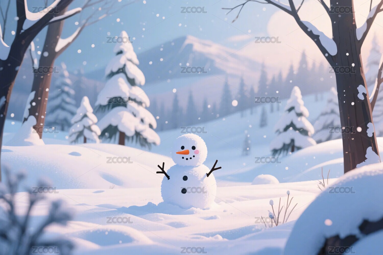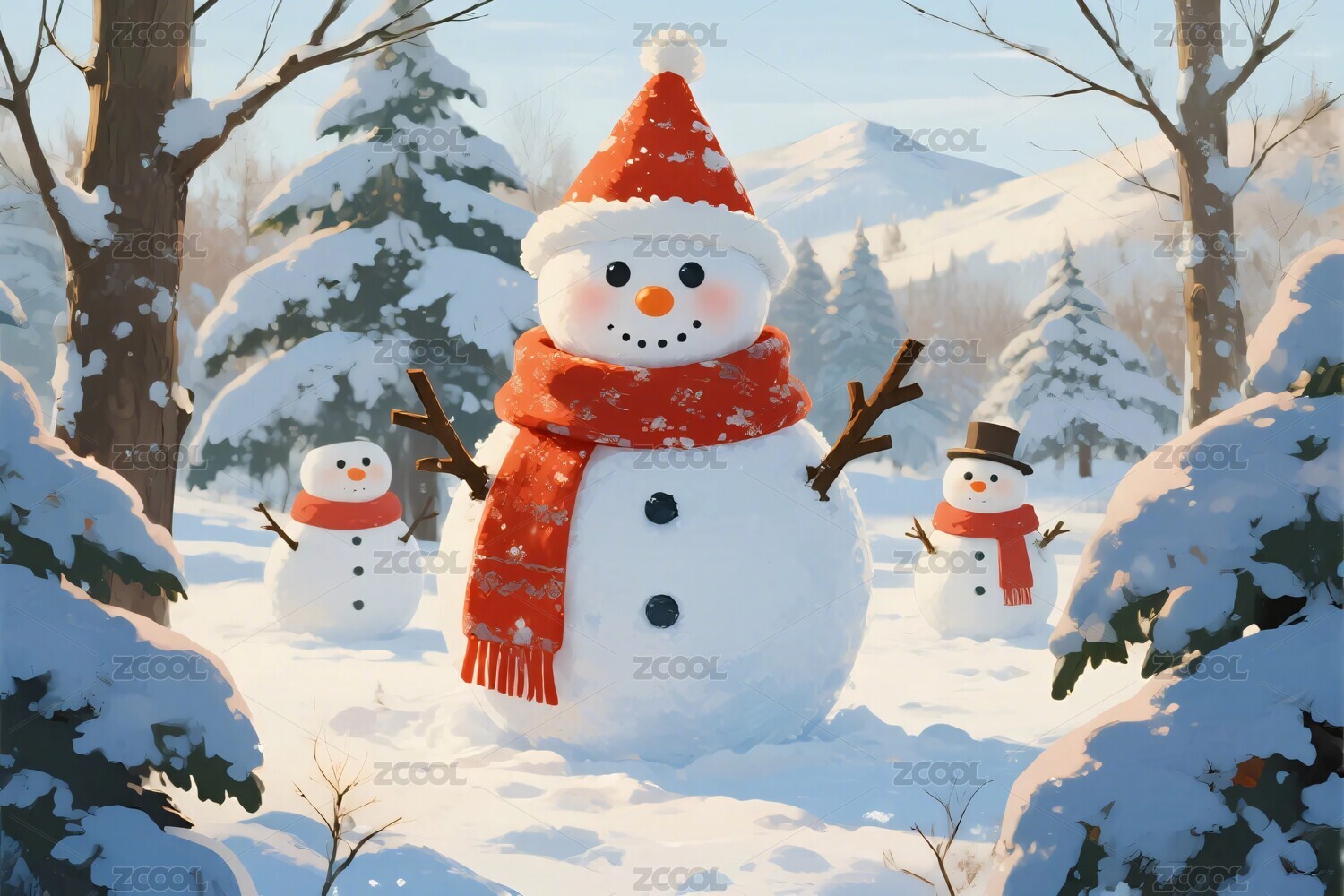 雪人,雪,树,黑色,橙色,大,小,帽子,围巾,表情