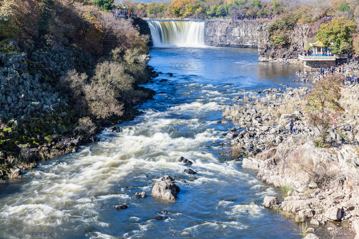 秋天的中国黑龙江牡丹江镜泊湖景区瀑布
