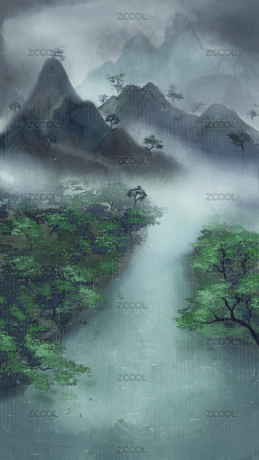 乡村,风光,传统建筑,绿色田野,路径,树木,山脉,水体,划船,自然美景